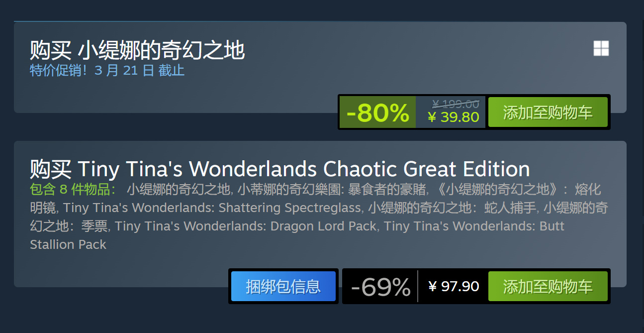這次春促,《小緹娜的奇幻之地》的折扣也非常不錯,尤其是本體,-80%OFF的折扣力度,折後僅需39.8元即可拿下標準版,性價比很不錯。