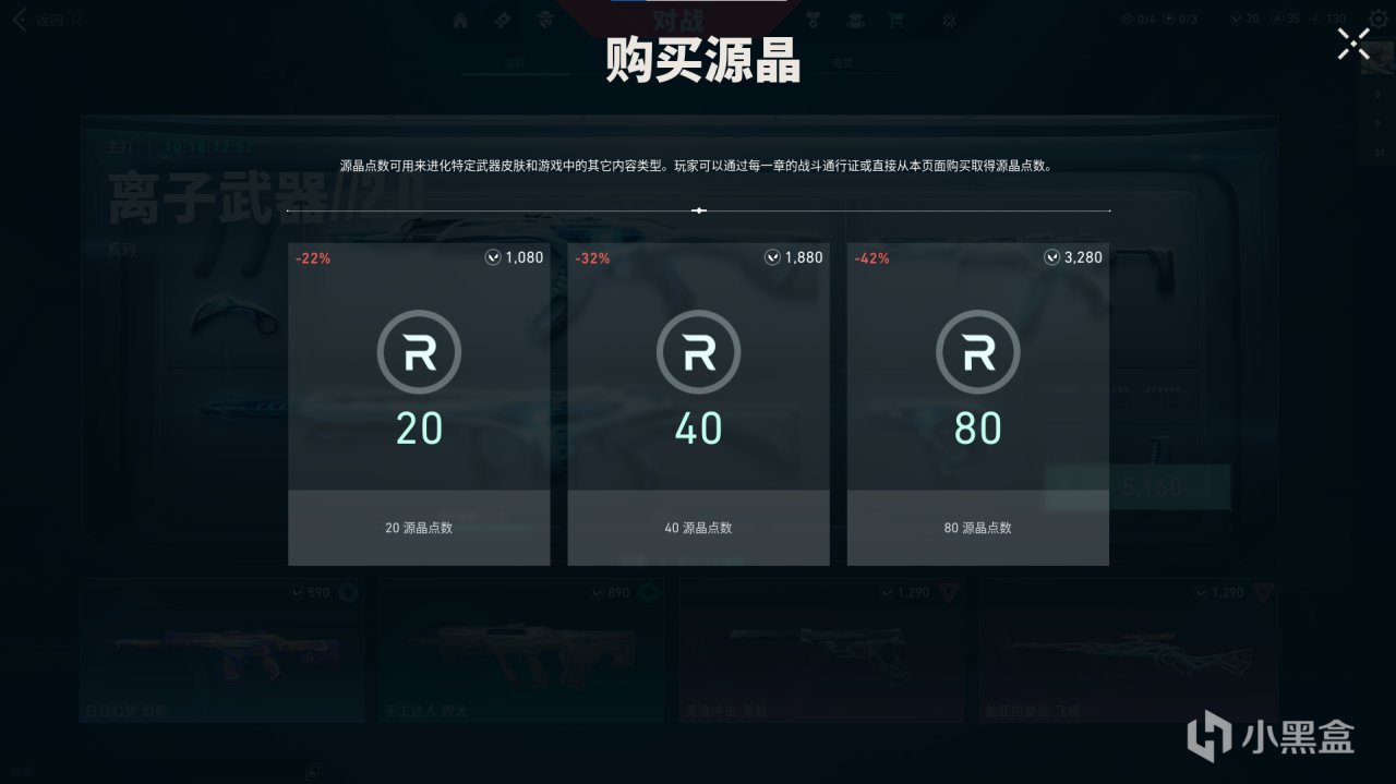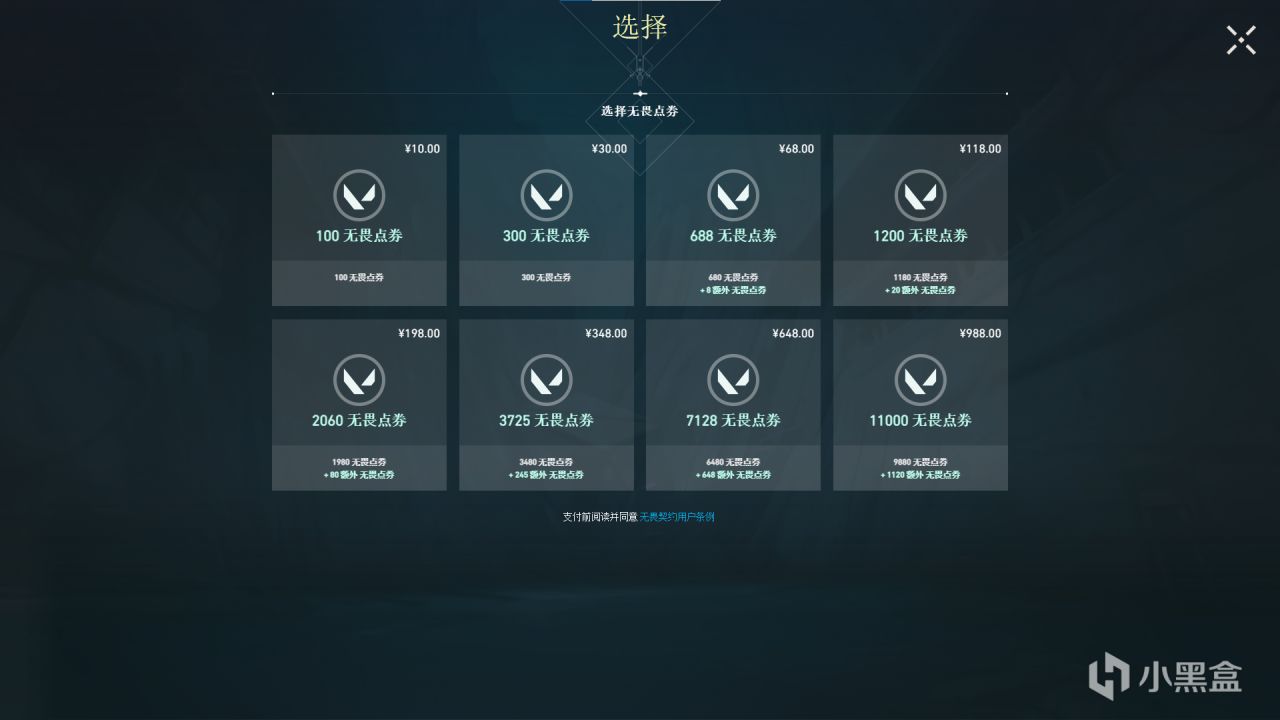 ·點券:可能是最常見的貨幣,跟其他遊戲一樣,點券的獲得方式就是充錢。而無畏契約國服的充值比例在所有服中都算貴的,充值比例幾乎爲1:10。