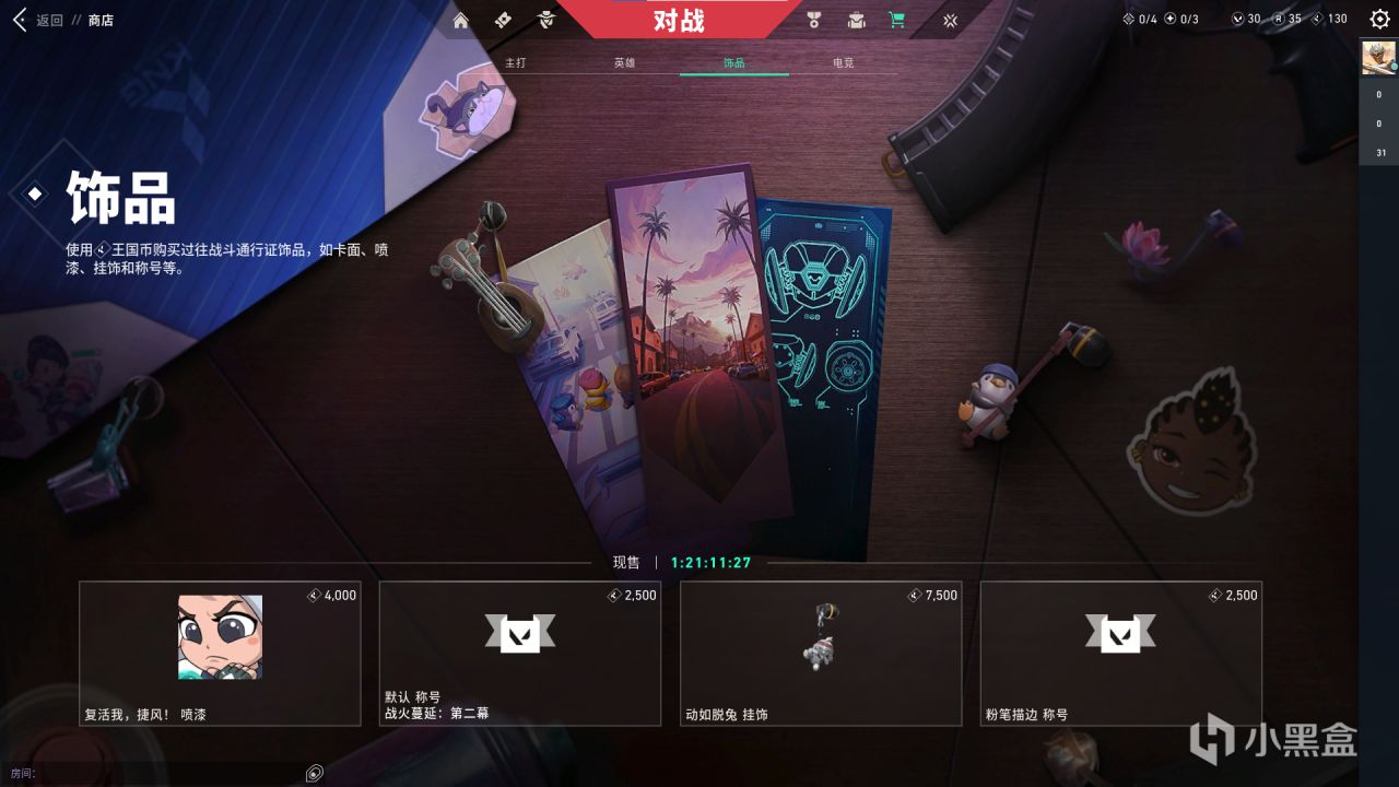 商店內每週會刷新4個飾品,當然無畏契約裏面的飾品和CS裏的飾品含義完全不同,這裏的"飾品”指的是卡面、掛件、噴漆、稱號,不包含任何皮膚,可以通過免費的王國幣購買。