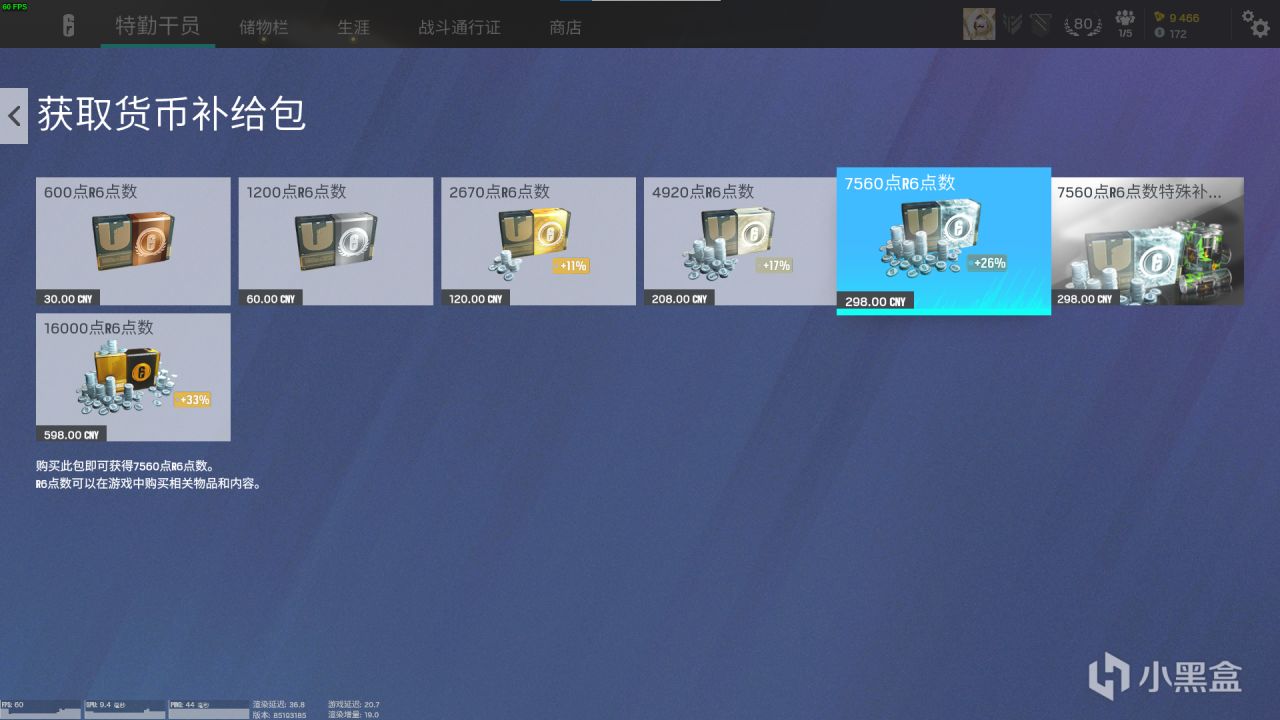 貨幣:聲望值和R6點數。不知道通行證系統的戰鬥代幣和爆破炸藥算不算。