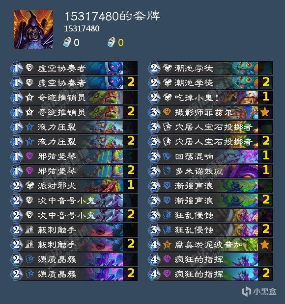 與大法術法同時期的巔峯卡組,雖然國服迴歸之後不久就死了。由於時間沒隔多久,卡組沒什麼大的變化。