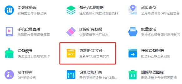 3. 點擊【更新IPCC文件】,並選擇本地IPCC文件,根據的正在使用的運營商選擇你剛剛解壓完成的PICC63.0文件,並點擊立即更新;