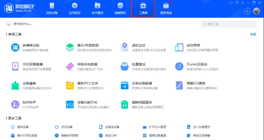 電腦端打開愛思助手,並將iPhone鏈接到電腦、同時進入工具箱;
