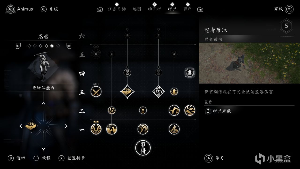 而這次比較有意思的地方在於,暗殺技能的派生也被很自然地整合到了武器的技能樹當中——奈緒江必須使用短刀才能夠做到雙重刺殺(很合理吧),而使用鎖鐮則可以做到遠距離的跳殺。