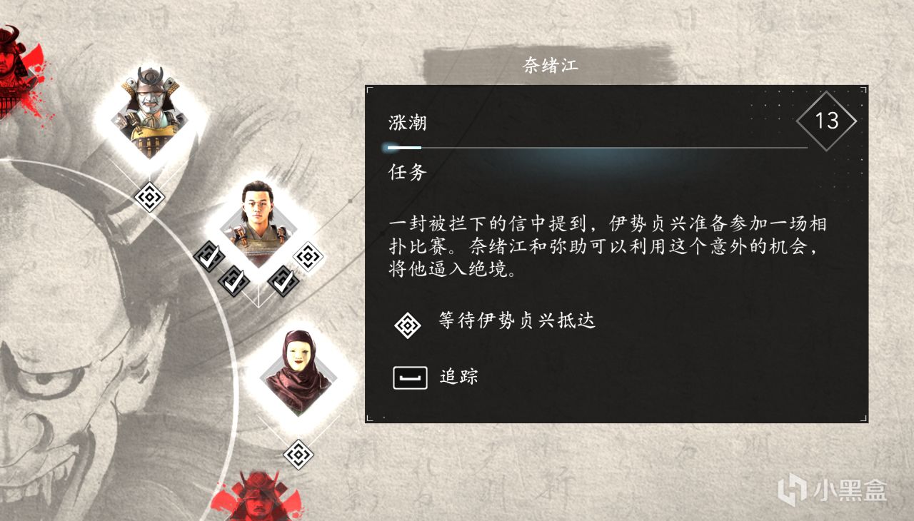 伊勢貞爲就是第一章伊勢貞興的哥哥,對話結束後,任務不爭氣的弟弟完結,我發現育碧很喜歡用抉擇的方式提醒玩家切換角色,但我確實更喜歡奈緒江,之前十多小時流程也已經習慣了用女主。