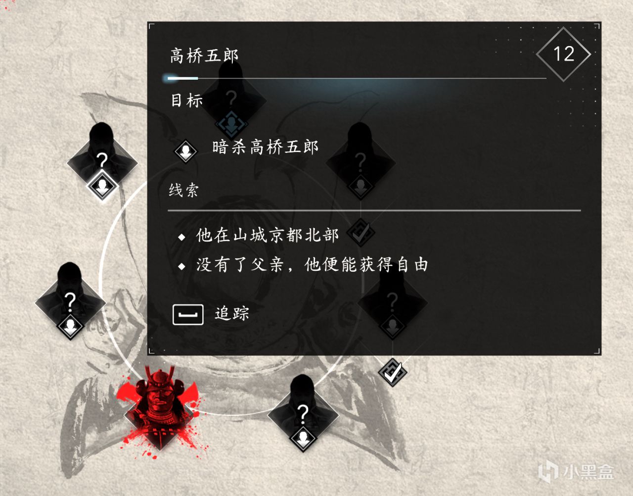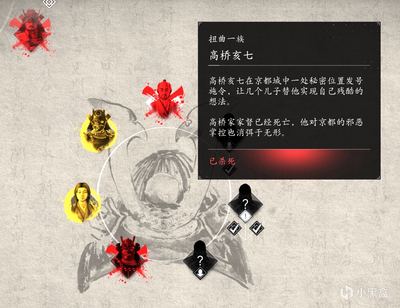 這也是個比較長的任務,因爲要殺掉高橋一家,劇情還挺有意思的。我們先去接商人任務,商人告訴我們家主高橋亥七非常殘暴,他平時住在京都的一處祕密會所,給自己兒子發號施令,然後七個人的位置線索全部曝光,這裏我們只用殺五人,高橋一姬和高橋五郎只需要擊殺亥七,就能讓他們重獲自由。