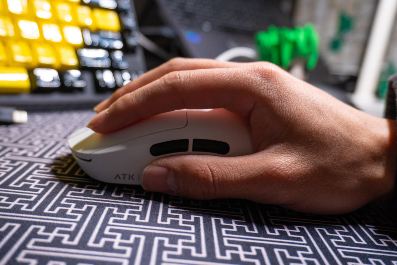 左側有爲大拇指的放置做凹陷,右側有人體工學曲面爲無名指和小指作引導