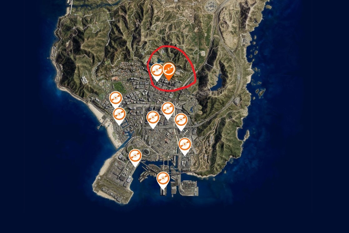 選址方面,如果你看重任務耗時,那最靠近富人區的兩處好麥塢夜總會就很合適。它們位於地圖的中心處,往各地銷售貨物都非常方便;而其它位置在交通便利上有打折,但影響不大。