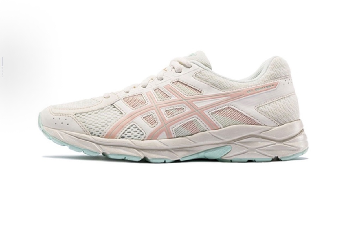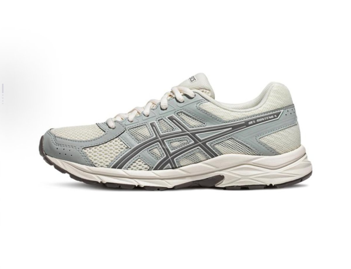Asics Gel-Contend 4 舒適百搭 織物合成革 低幫 休閒長跑短跑城市通勤跑步鞋 女款 米白灰