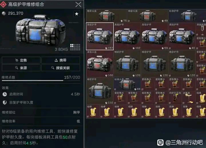 修理護甲一定要用至少高一個等級的修理包,因爲同級別的修理包基本只能修理一次就不能再用了。高級的修理包不僅可以一次修理滿護甲的耐久而且修理包本身的耐久損耗也會低非常非常多可以在激烈拉鋸戰中有更強的作戰能力。