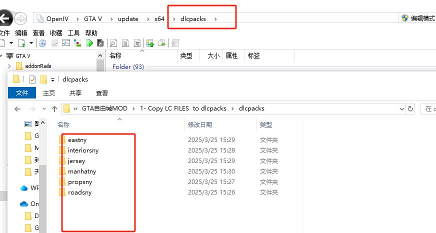 將dlcpacks裏面的文件夾全部拉進openiv標註目錄