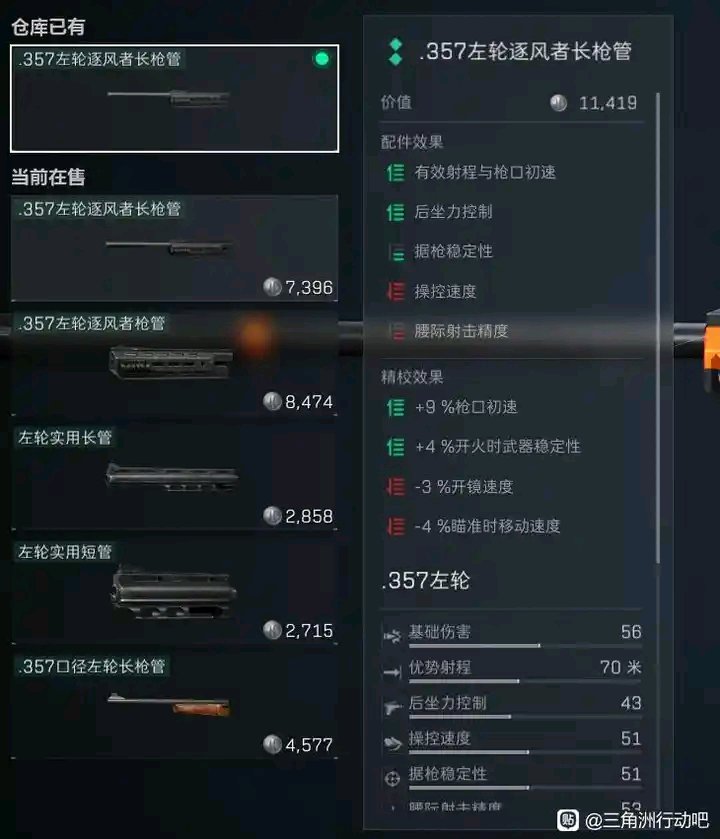 然後兩個槍管的價格因爲上述原因所以在平時白天價格7-8000,晚上價格10000+,週末偶爾20000+。 各位平時可以多備幾個槍管,這個槍管在機密和普通圖的武器箱裏的刷新率還是蠻高的。平時不猛攻跑刀進圖的時候可以帶把沒配件的左輪拿來裝配件,只要裝一根槍管就能回本而且還經常能裝下高倍鏡省揹包格子能多帶不少東西。