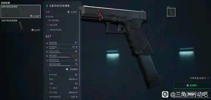 沒有實用價值但也推薦帶一把,0實用價值是因爲這手槍的單發傷害簡直搞笑。打機哥頭時如果機哥有頭盔就要打好幾槍,打四肢更是要打七八槍簡直離譜, 不過他和g18的彈匣是通用的,所以可以帶一把裝在手槍位去摸武器箱裝33發彈匣出來用或者賣錢,帶這把手槍進圖只要撤離那就是穩賺不虧的,因爲他用的9x19三級子彈在機哥身上隨處可見,只要裝滿17發那就是7000多哈夫幣。在武器箱撿到33發彈匣還能裝更多。