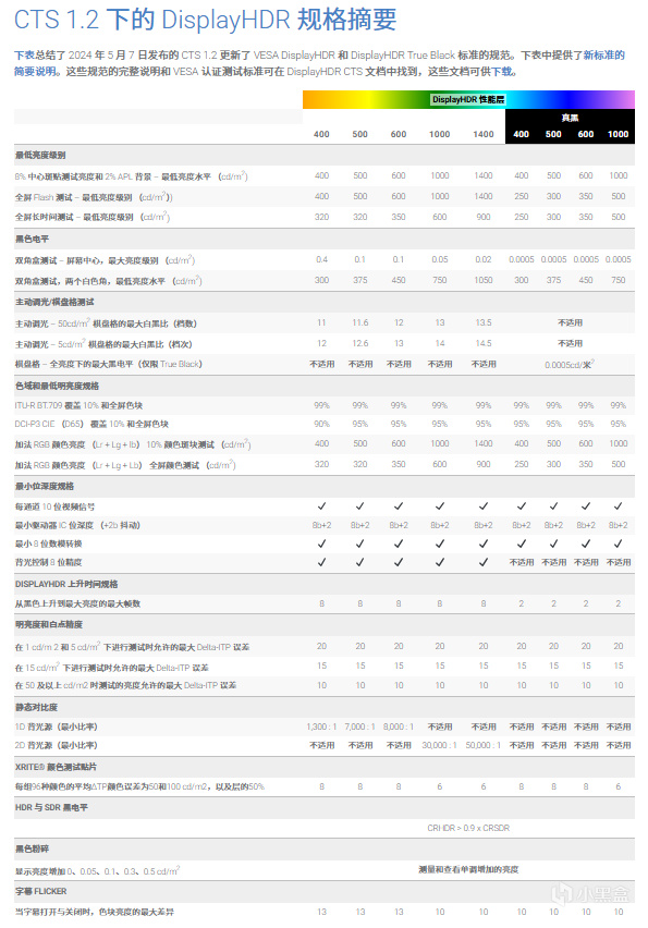 這裏只提一嘴最常見的DisplayHDR認證,針對LCD屏幕和OLED屏幕有不同的認證標準,標準要求的具體參數我找了官網幾張圖,大夥可以簡單看一下: