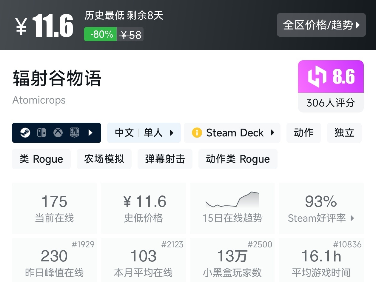 大家好,沒錯,又是我,那個肉鴿遊戲愛好者,不知道大家發現了嘛,最近在打折的肉鴿遊戲很多很多,不知道的還以爲最近是什麼遊戲節,但其實不是,我將爲各位盒友進行一個彙總,希望我的彙總,能夠幫助各位盒友挑選心儀的遊戲。