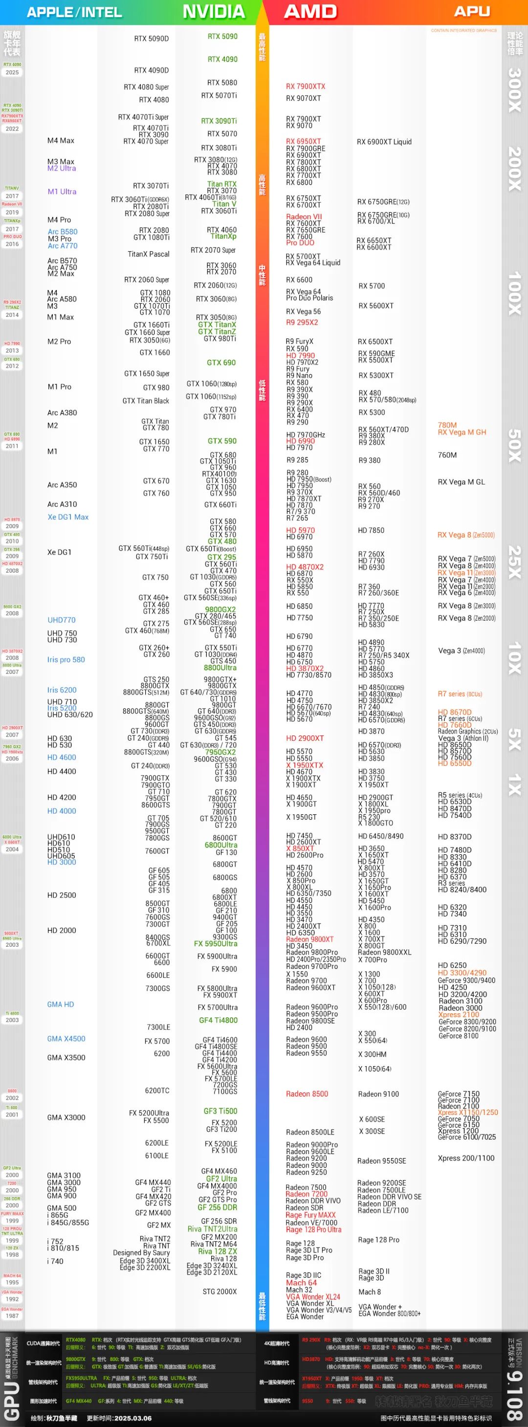 下面先簡單給本篇中出場的主要硬件進行一個遊戲性能的大致排序,以便小白可以對性能有基本認知: