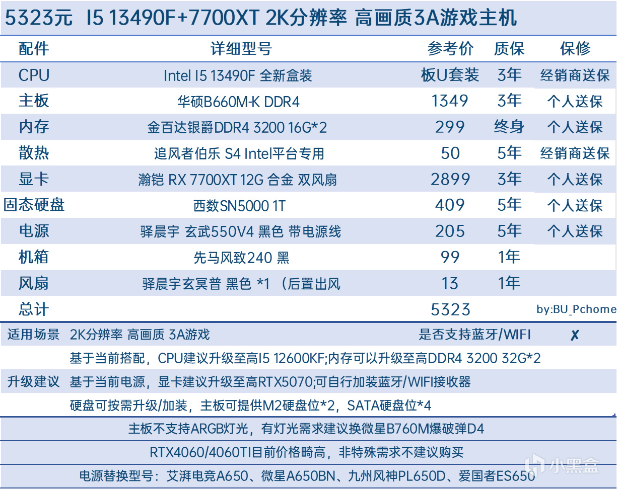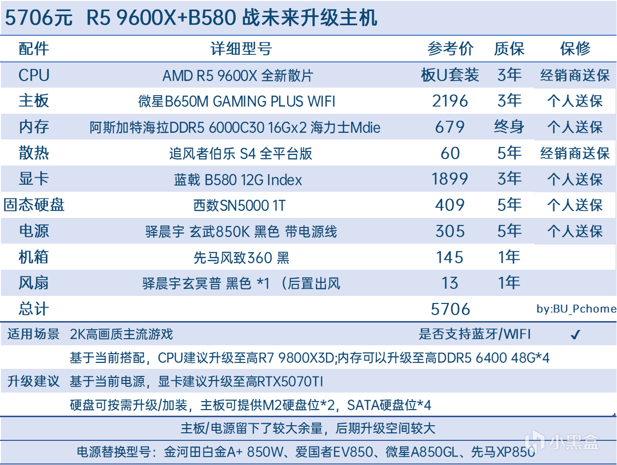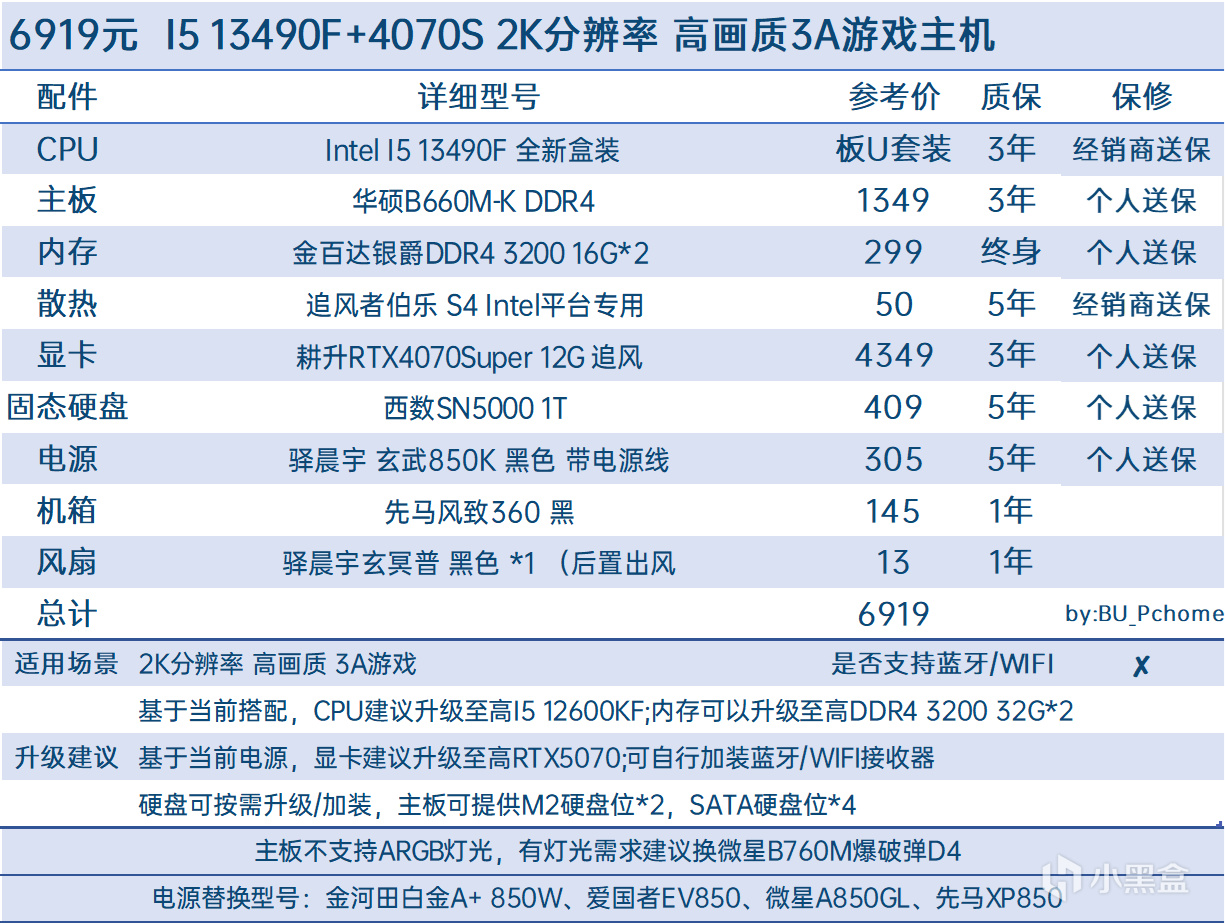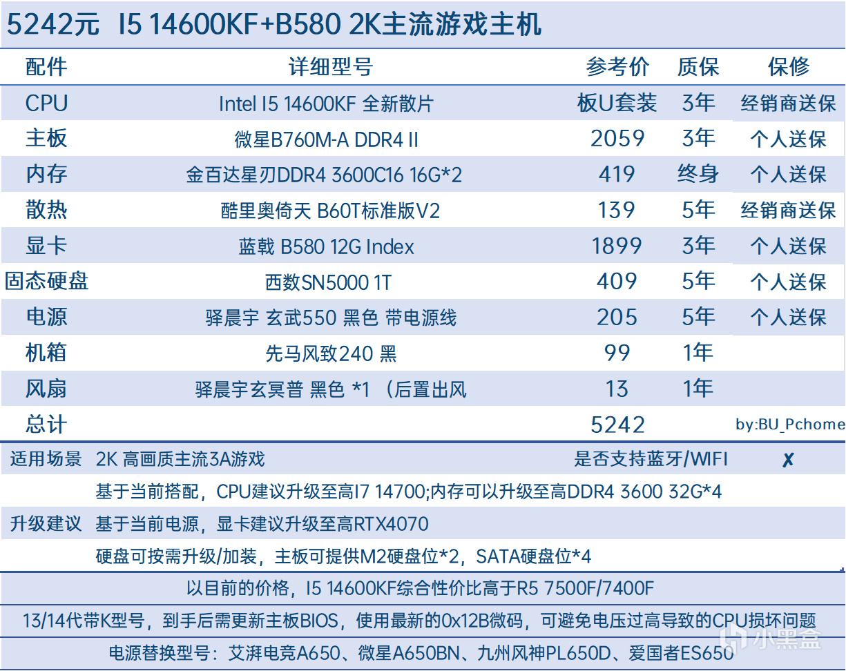關於電源:如果覺得我給的電源檔次偏低,自己可以加錢換其他型號,更換顯卡時請務必關注電源是否夠用/機箱兼容性;