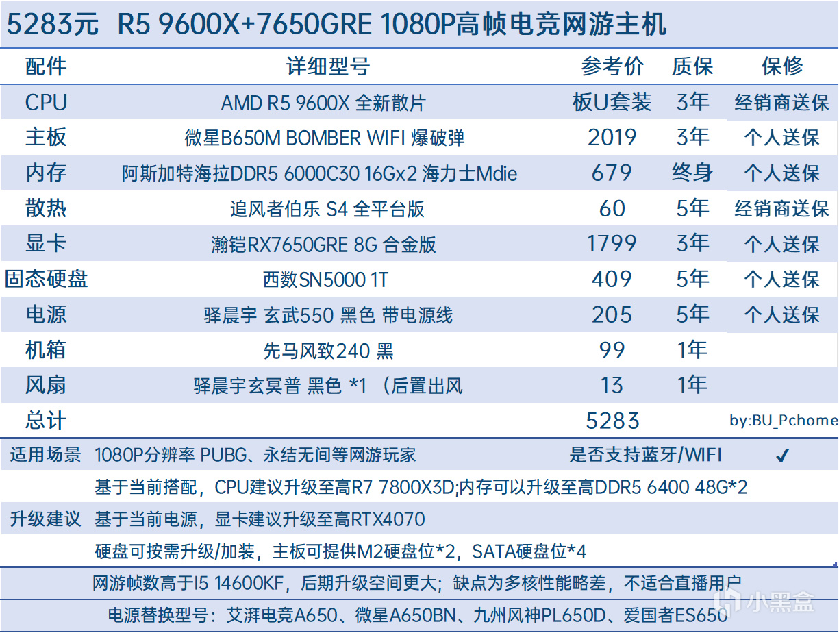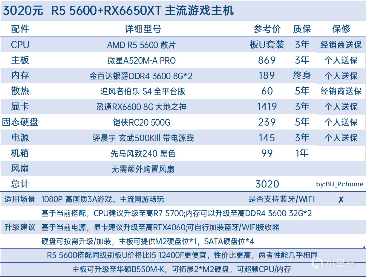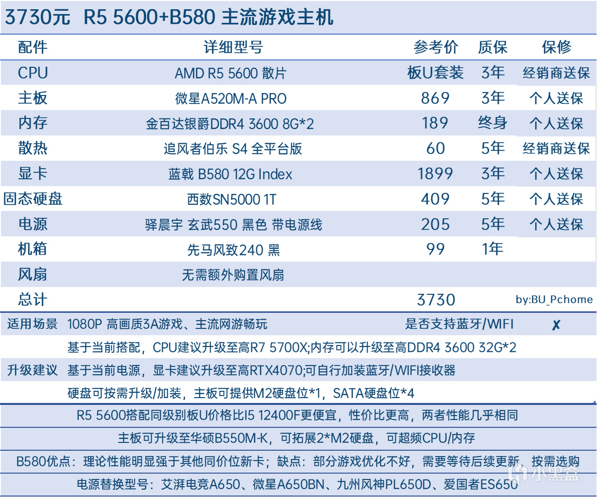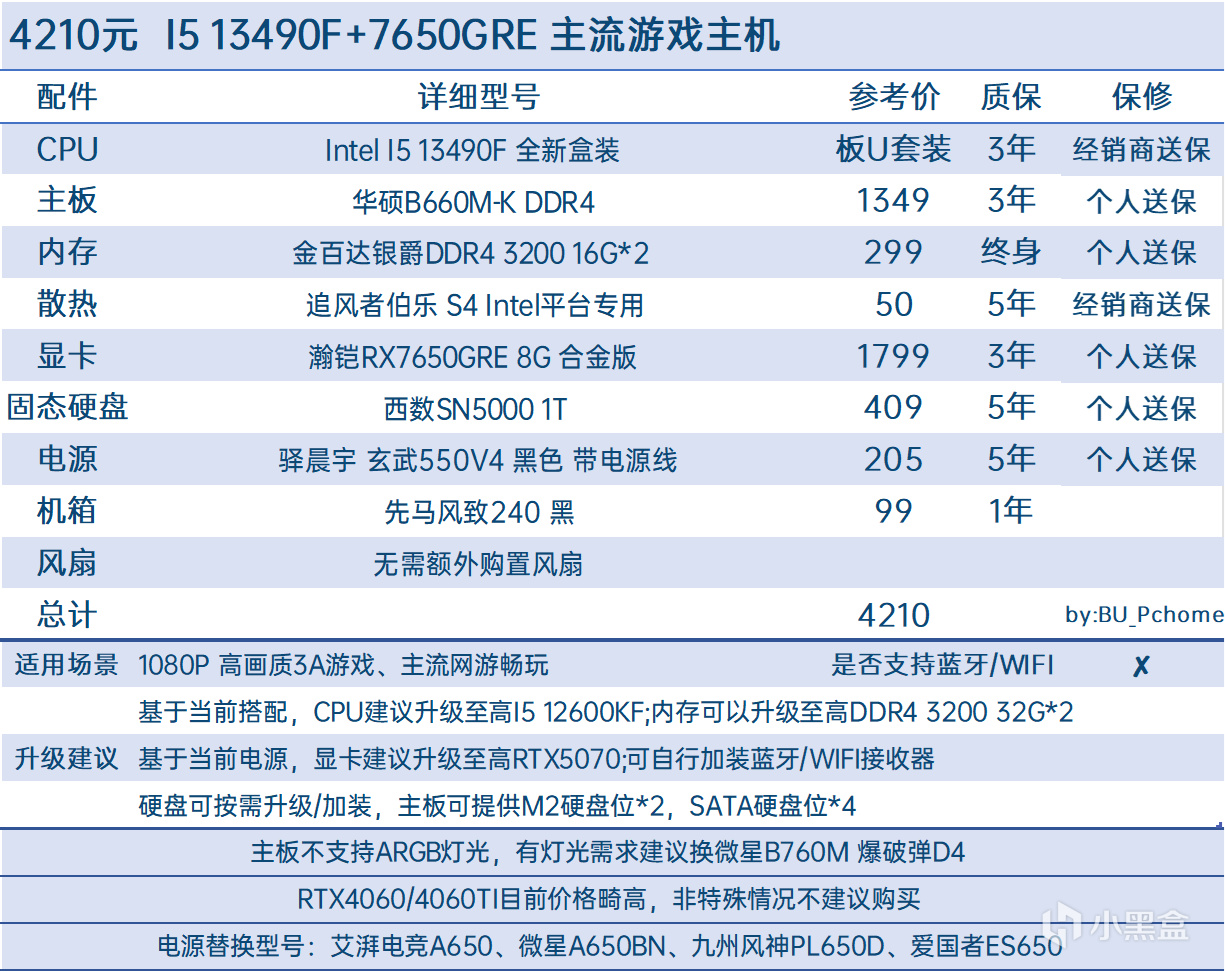 關於電源:如果覺得我給的電源檔次偏低,自己可以加錢換其他型號,更換顯卡時請務必關注電源是否夠用/機箱兼容性;