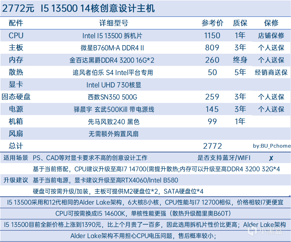文中給的配置單可以看作是基本框架,對硬件有自己的理解都可以自行更換想要的配件。圖裏的配件基本都是在滿足性能要求下的性價比選擇;