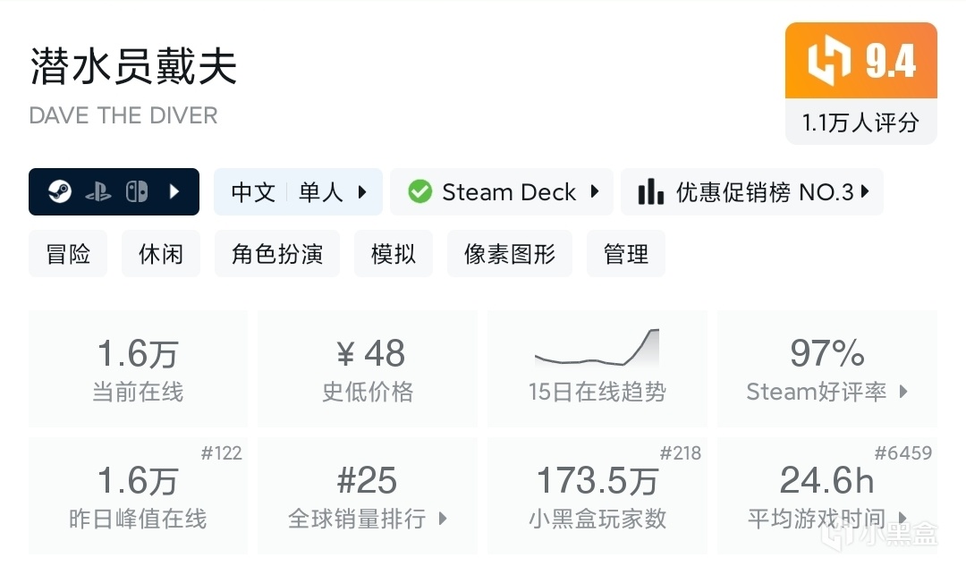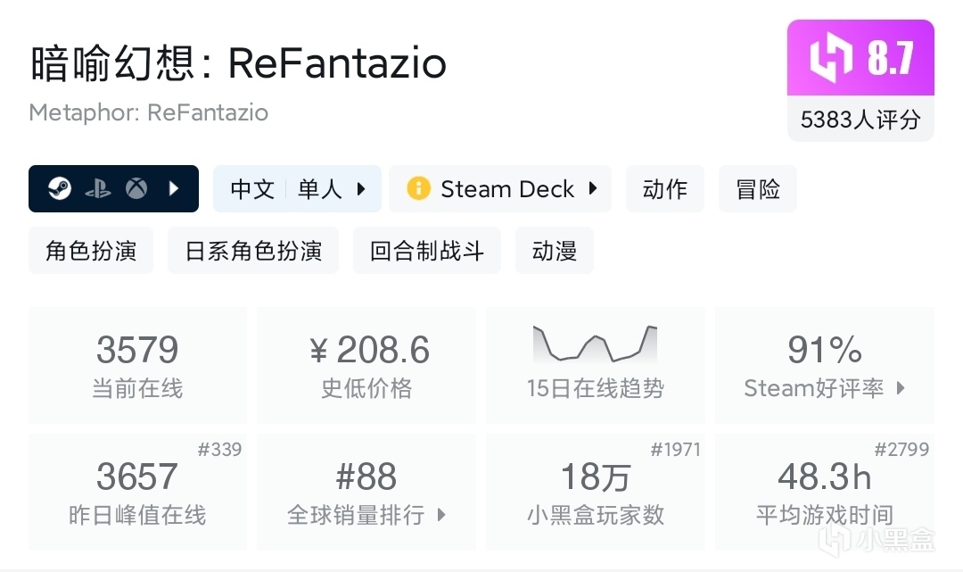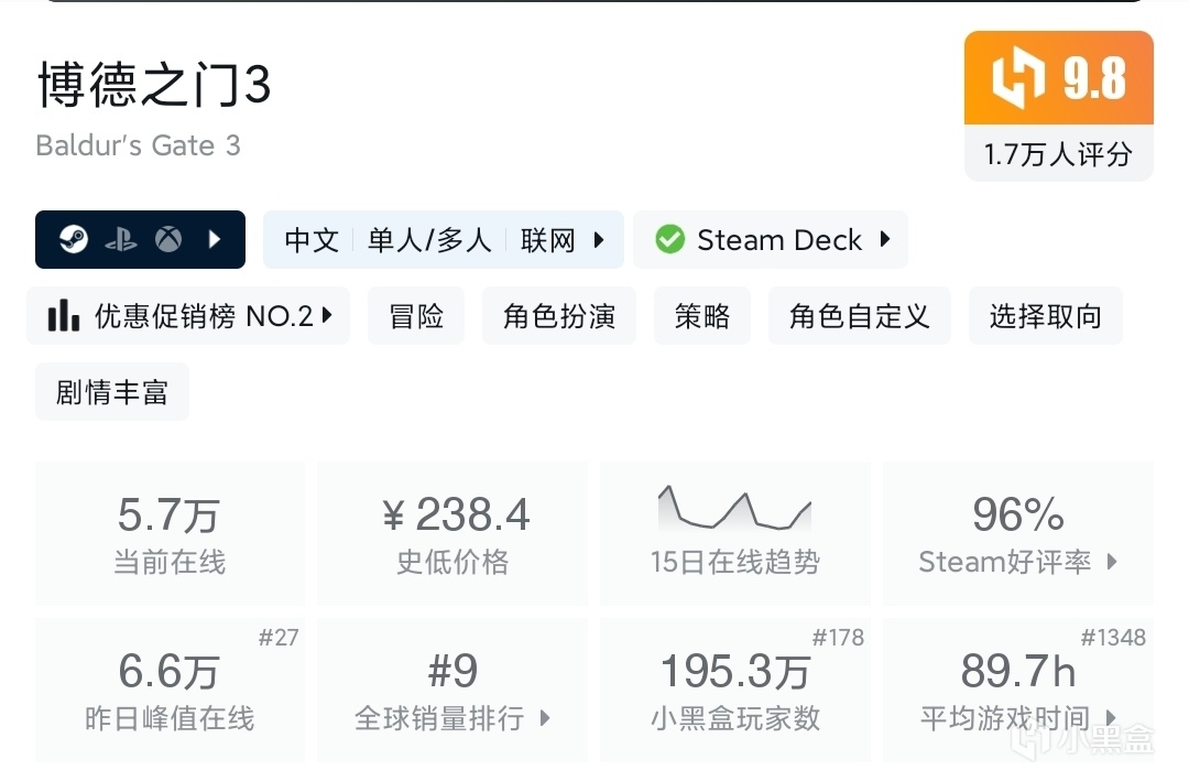 雖然之前漲價過,但是史低的頻率也挺高。神作的確是神作,但還是建議買之前先看看視頻,遊戲前期節奏較慢,需要適應一下。