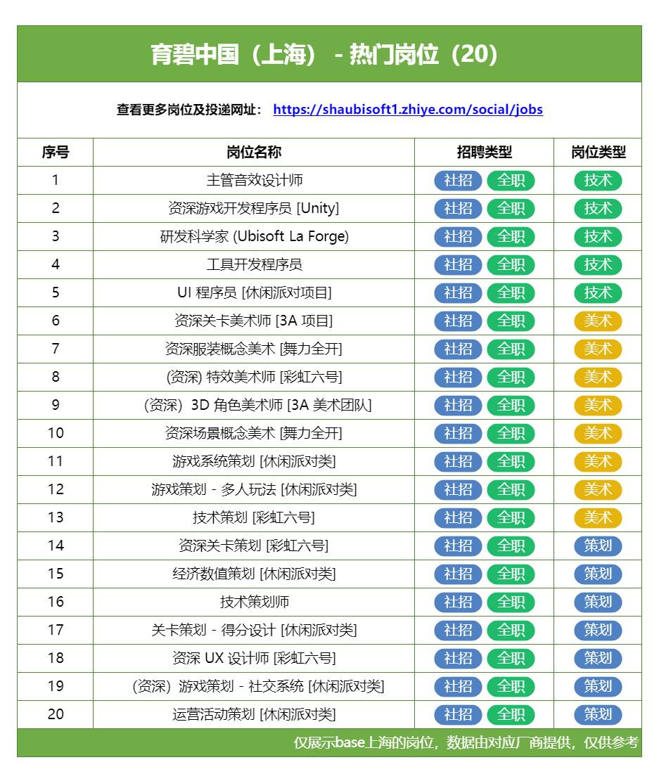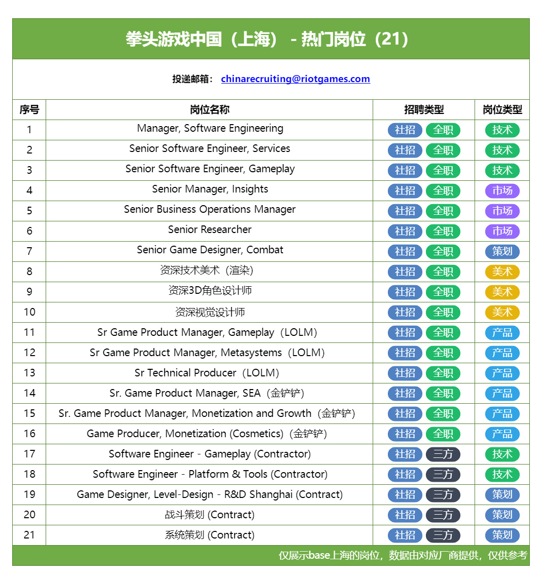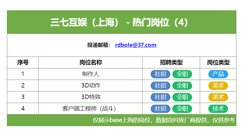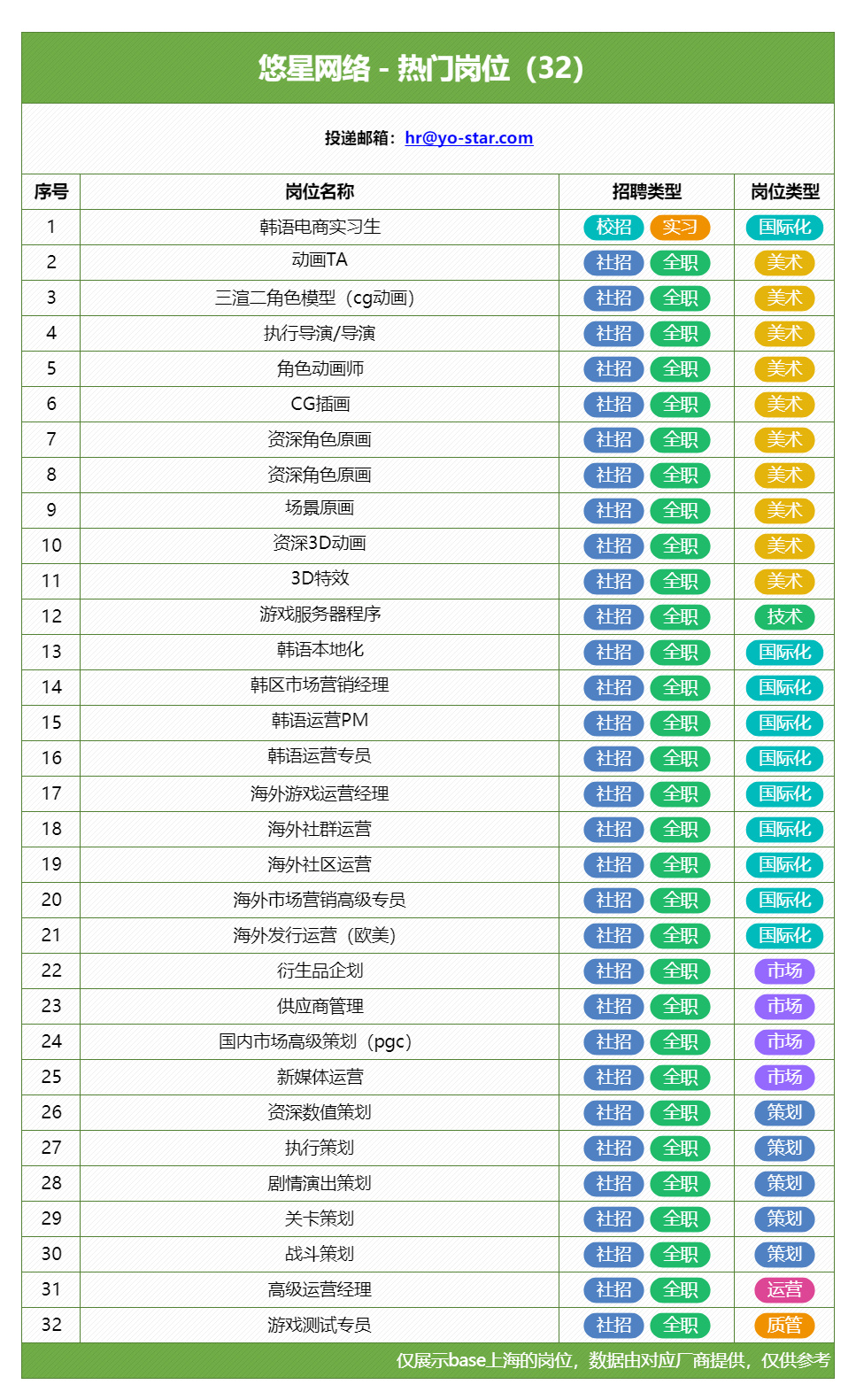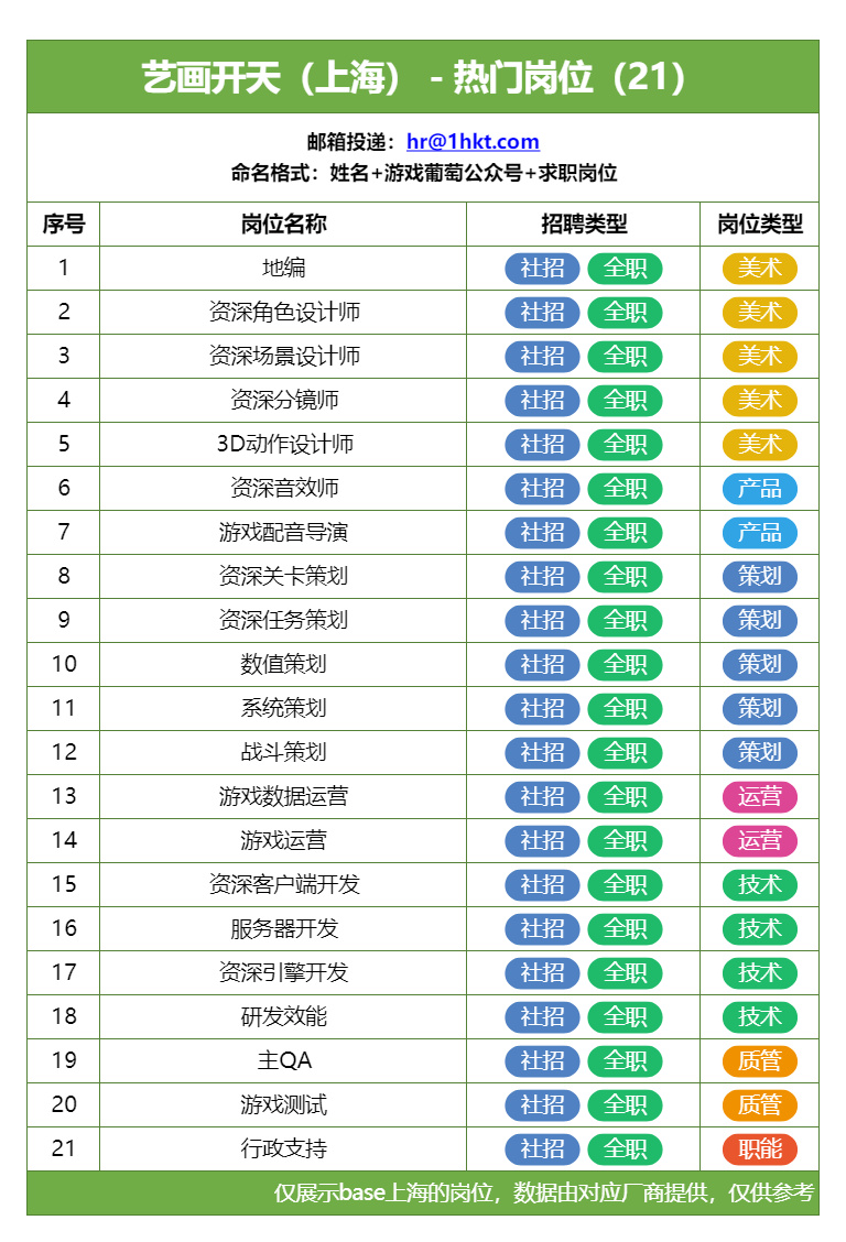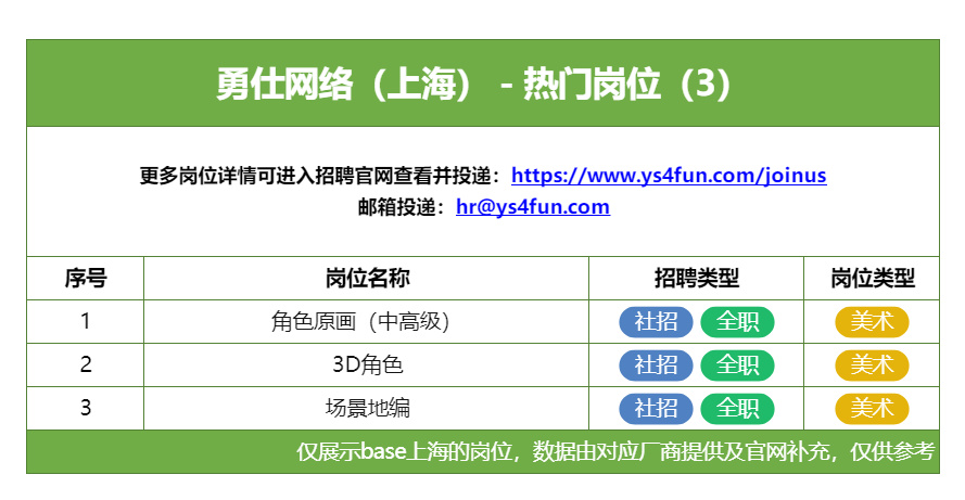 本文另附上海遊戲公司春招熱門崗位在線文檔,歡迎各位查看和交流: