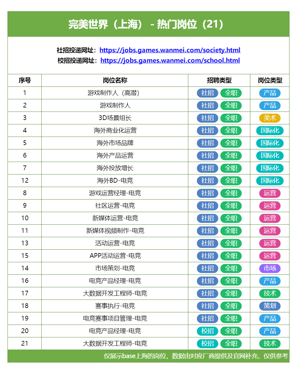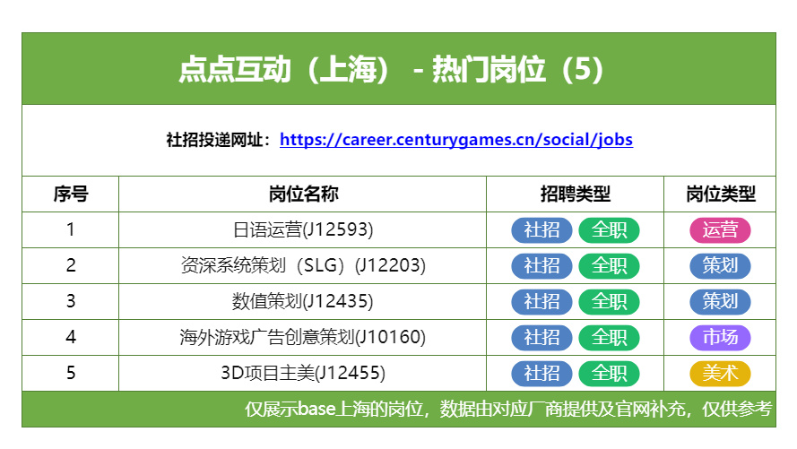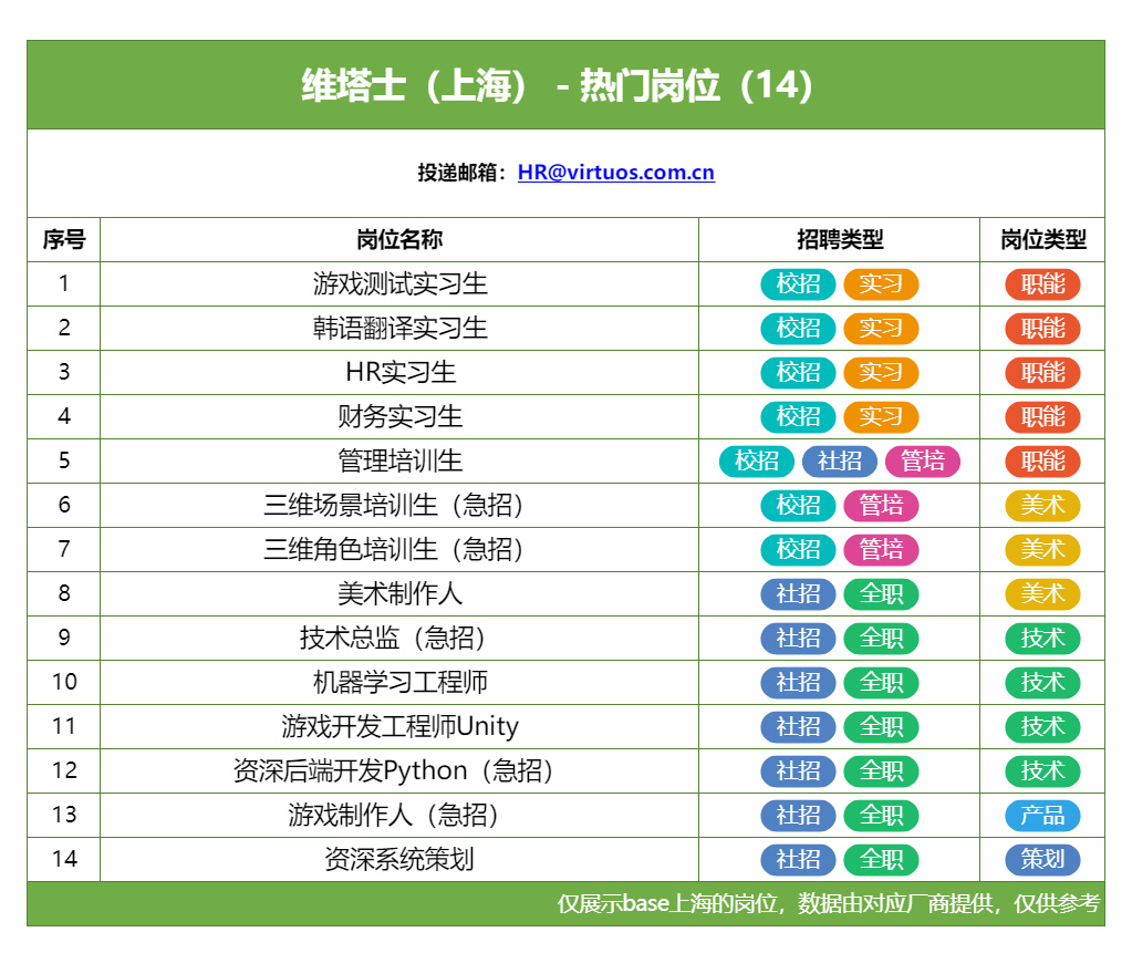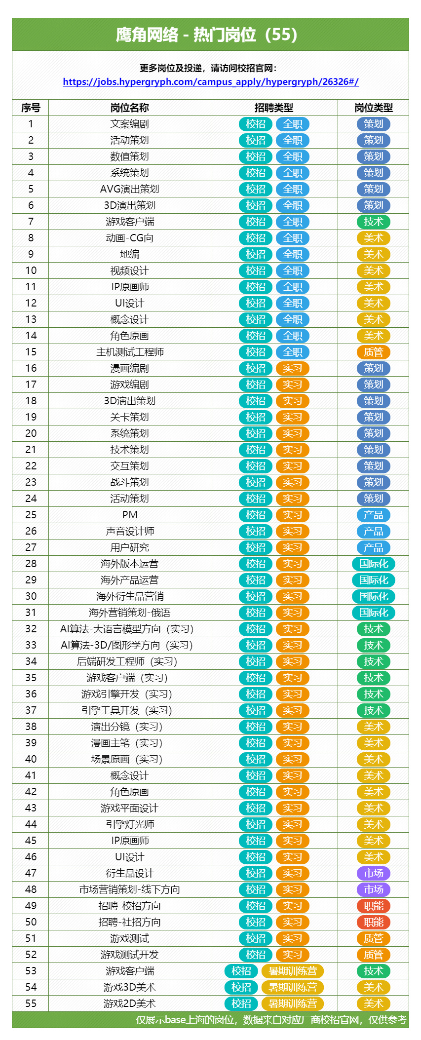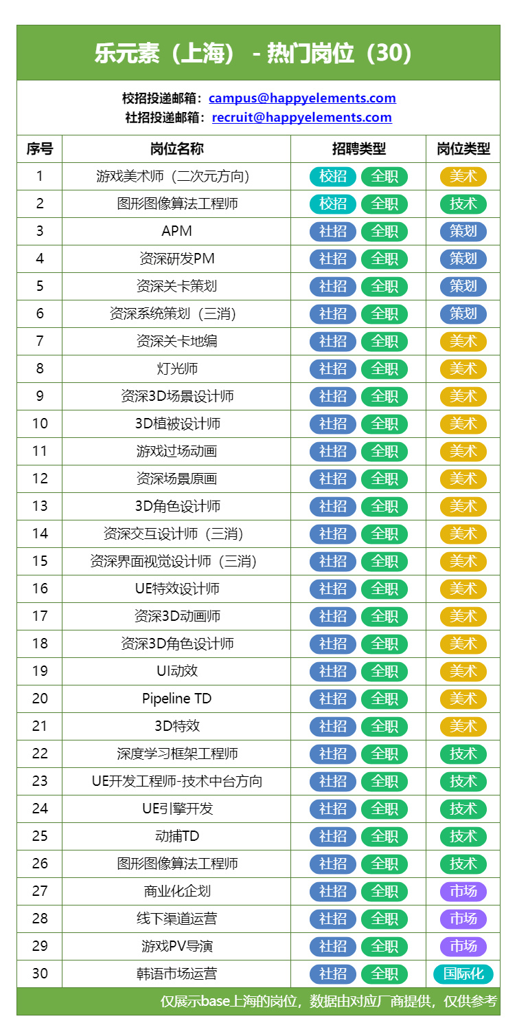 本文另附上海遊戲公司春招熱門崗位在線文檔,歡迎各位查看和交流: