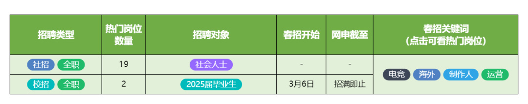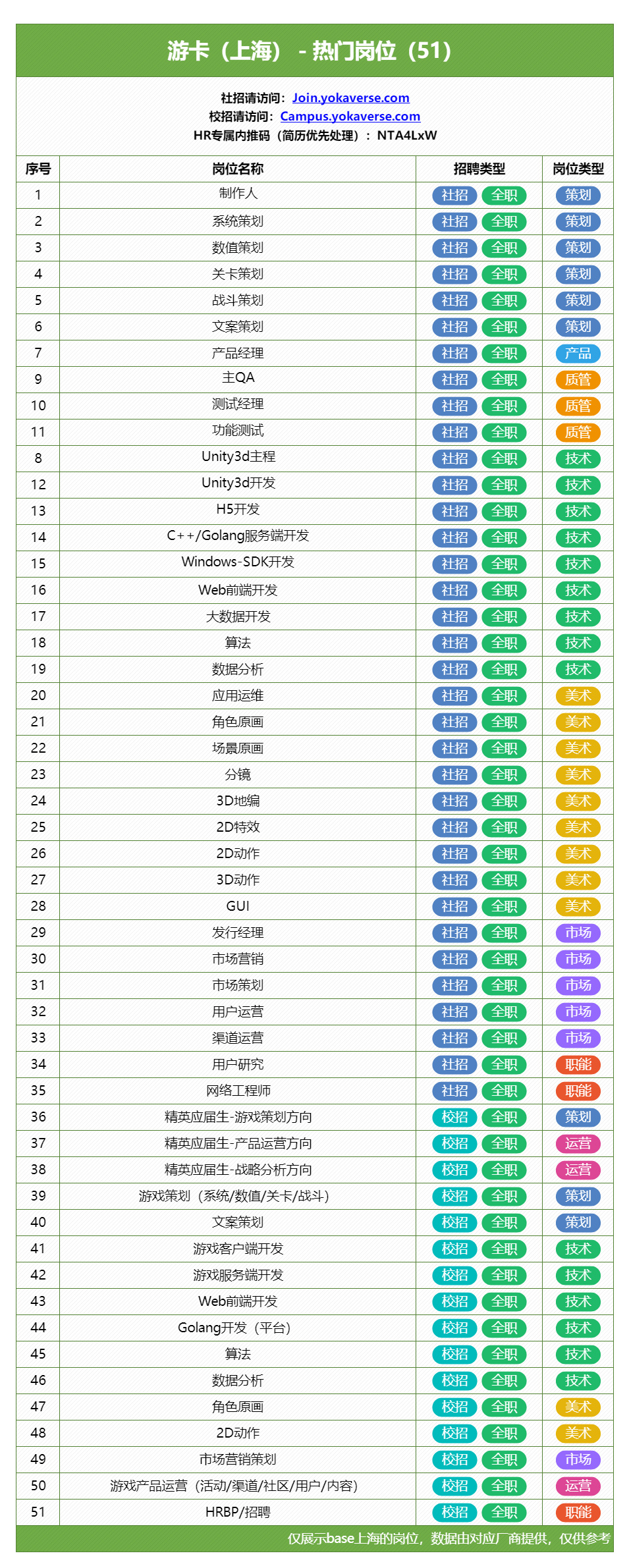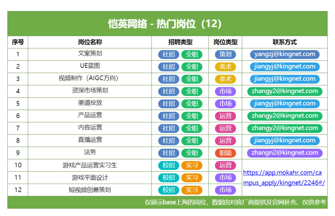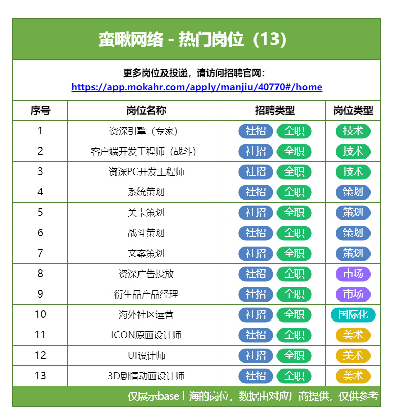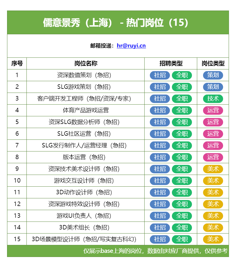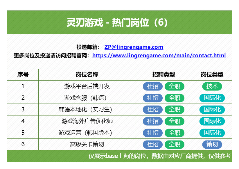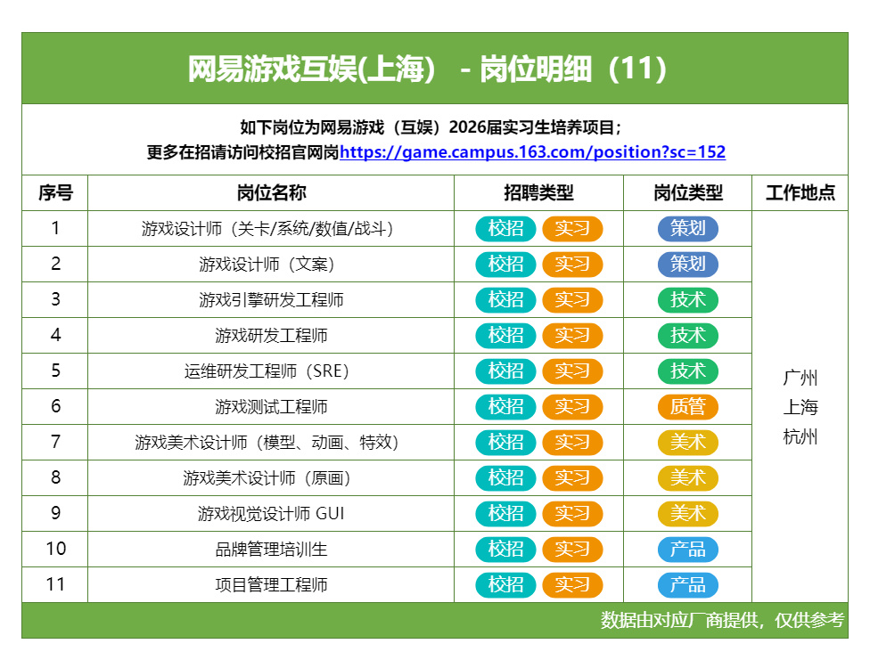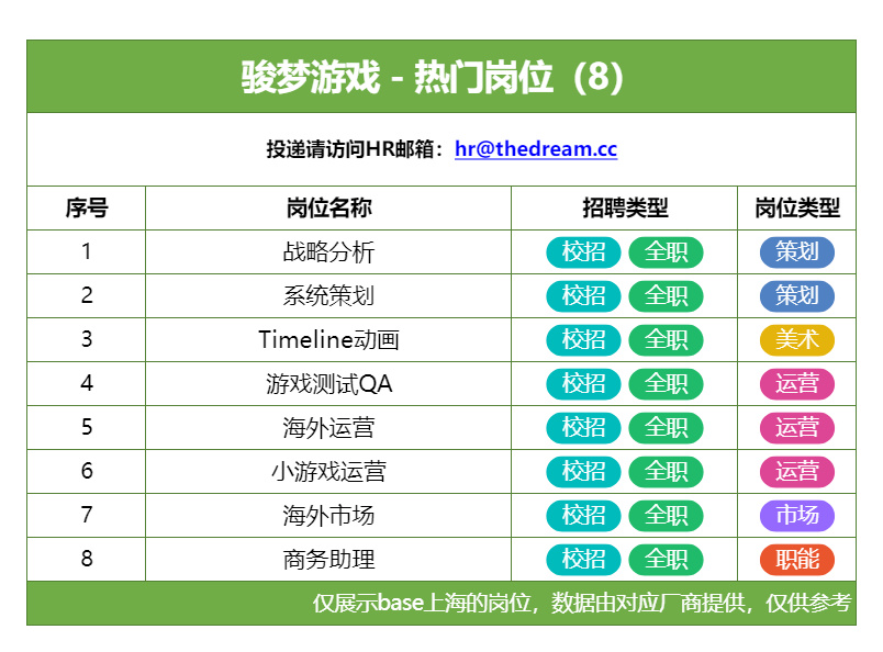 本文另附上海遊戲公司春招熱門崗位在線文檔,歡迎各位查看和交流: