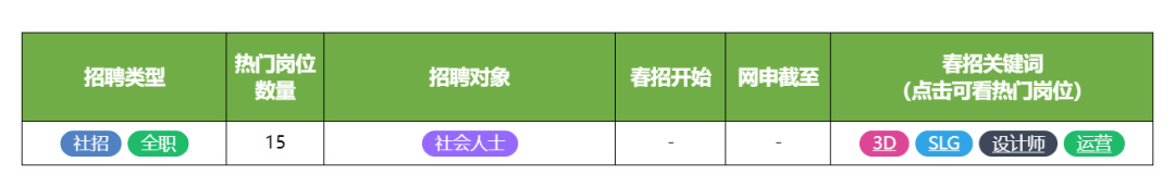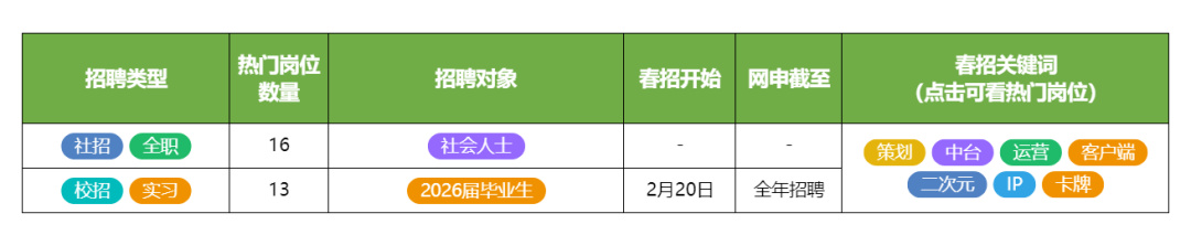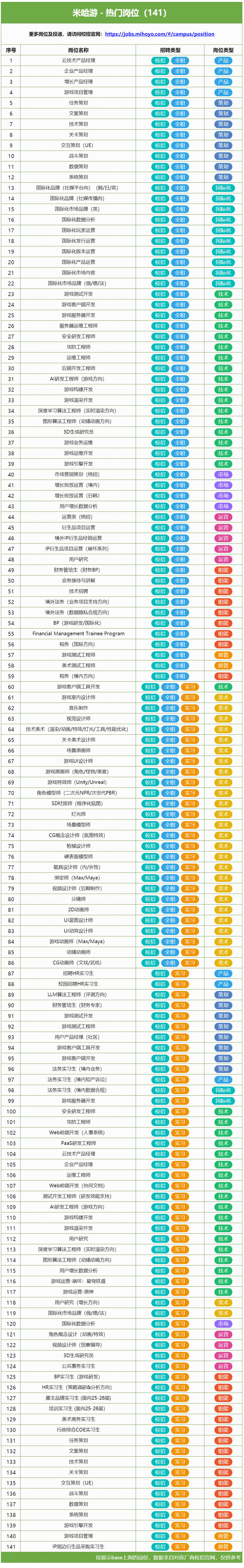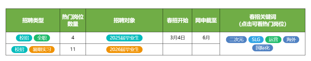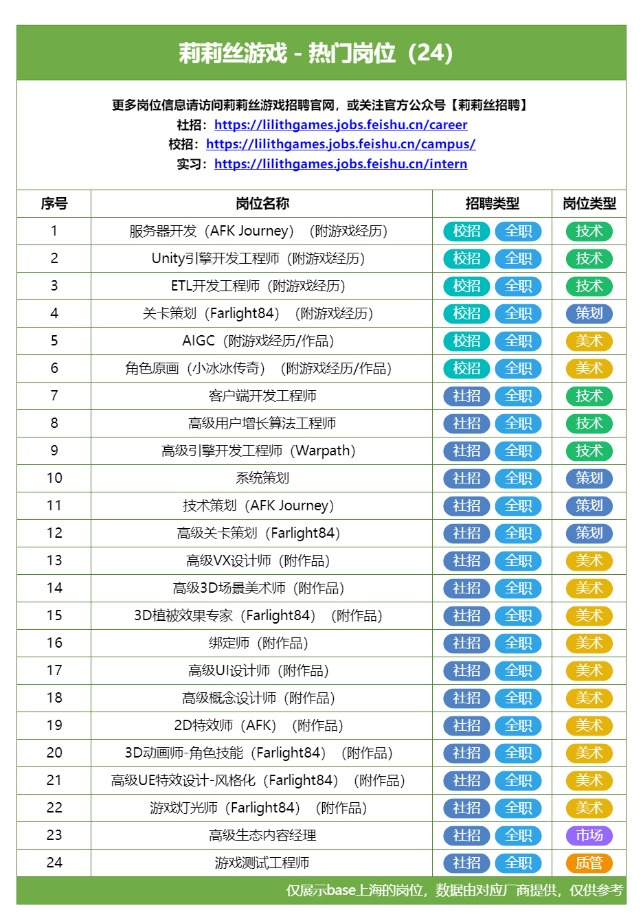春招信息及崗位明細表(三方整理,共24個崗位),可關注官方公衆號【莉莉絲招聘】: