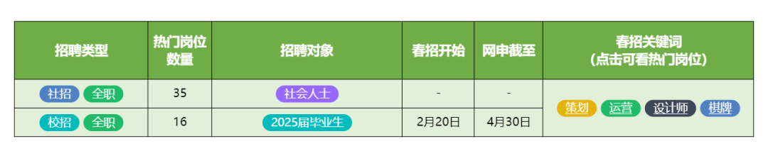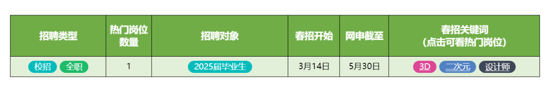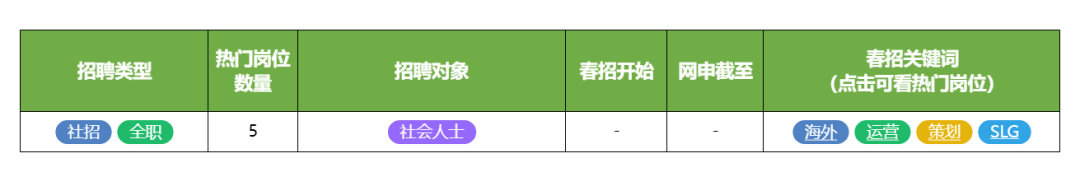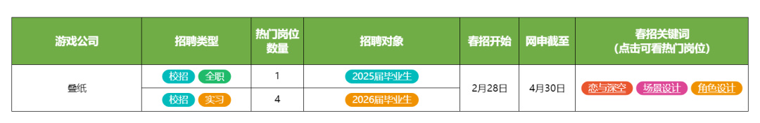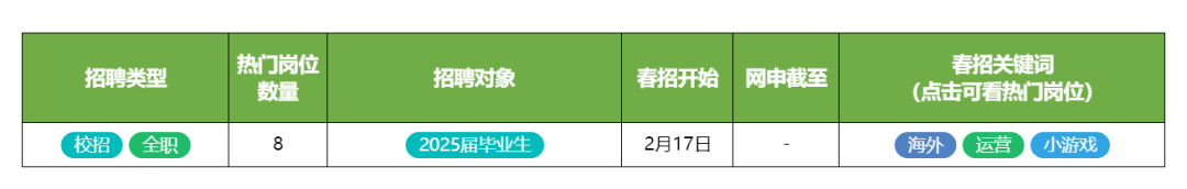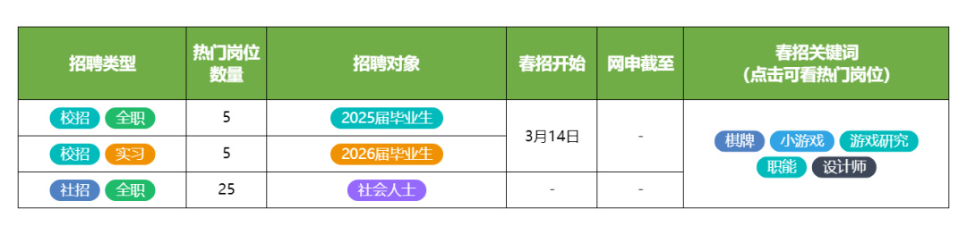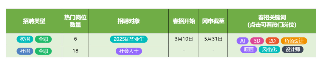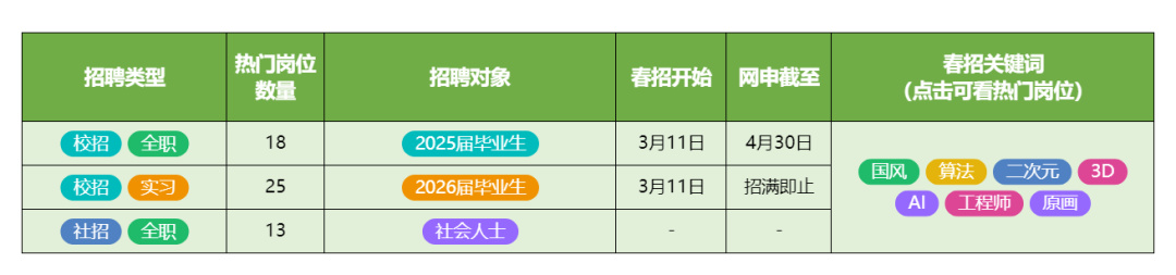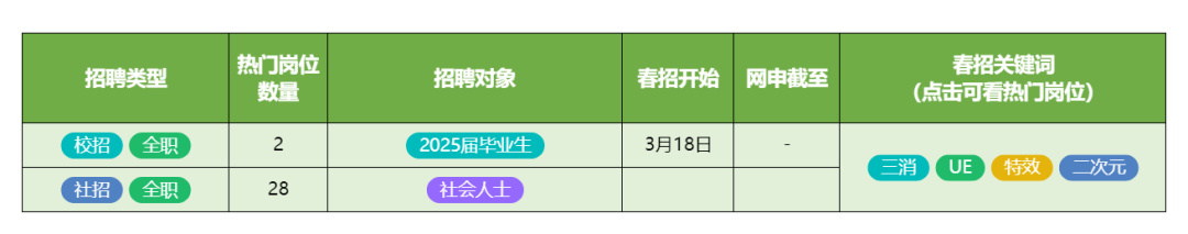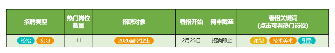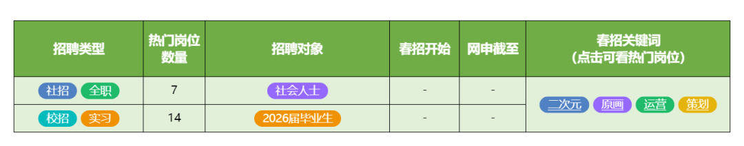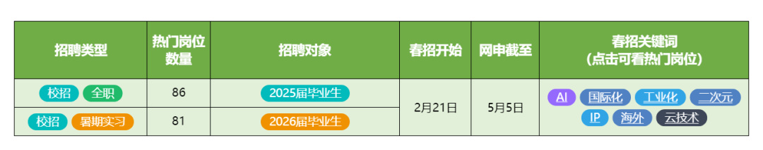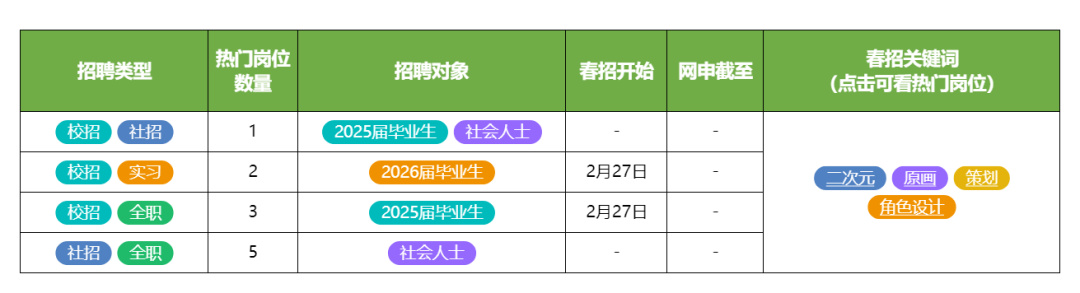 春招信息及崗位明細表(三方整理,共24個崗位),可關注官方公衆號【莉莉絲招聘】: