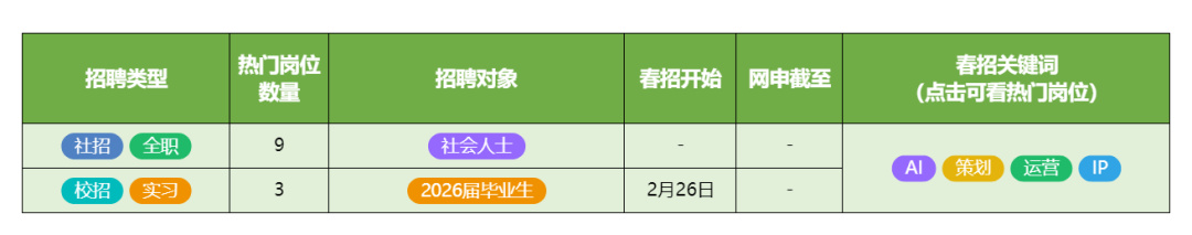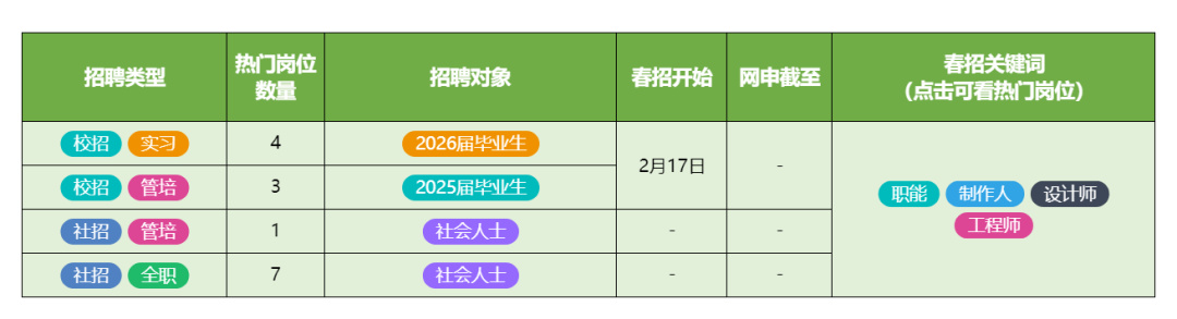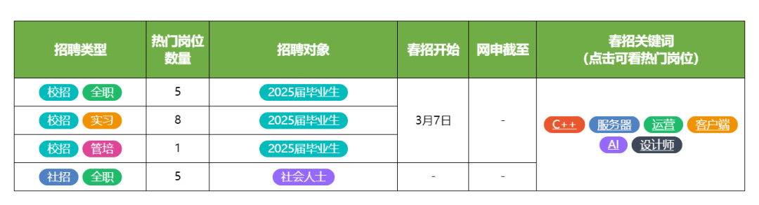 表格所列公司及崗位,由對應公司提供或公開資料蒐集,不代表該公司真實春招情況,可能與其官網展示的崗位數量及信息有所差異,具體情況請關注官方動態,數據僅供參考,如有錯誤或遺漏歡迎討論補充。