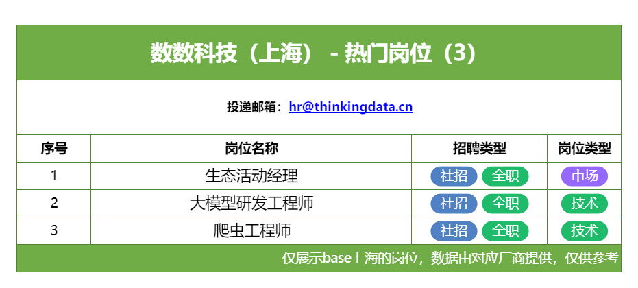 春招信息及崗位明細表(三方整理,共3個崗位),投遞郵箱hr@thinkingdata.cn 。