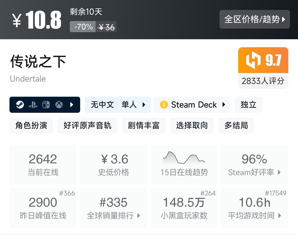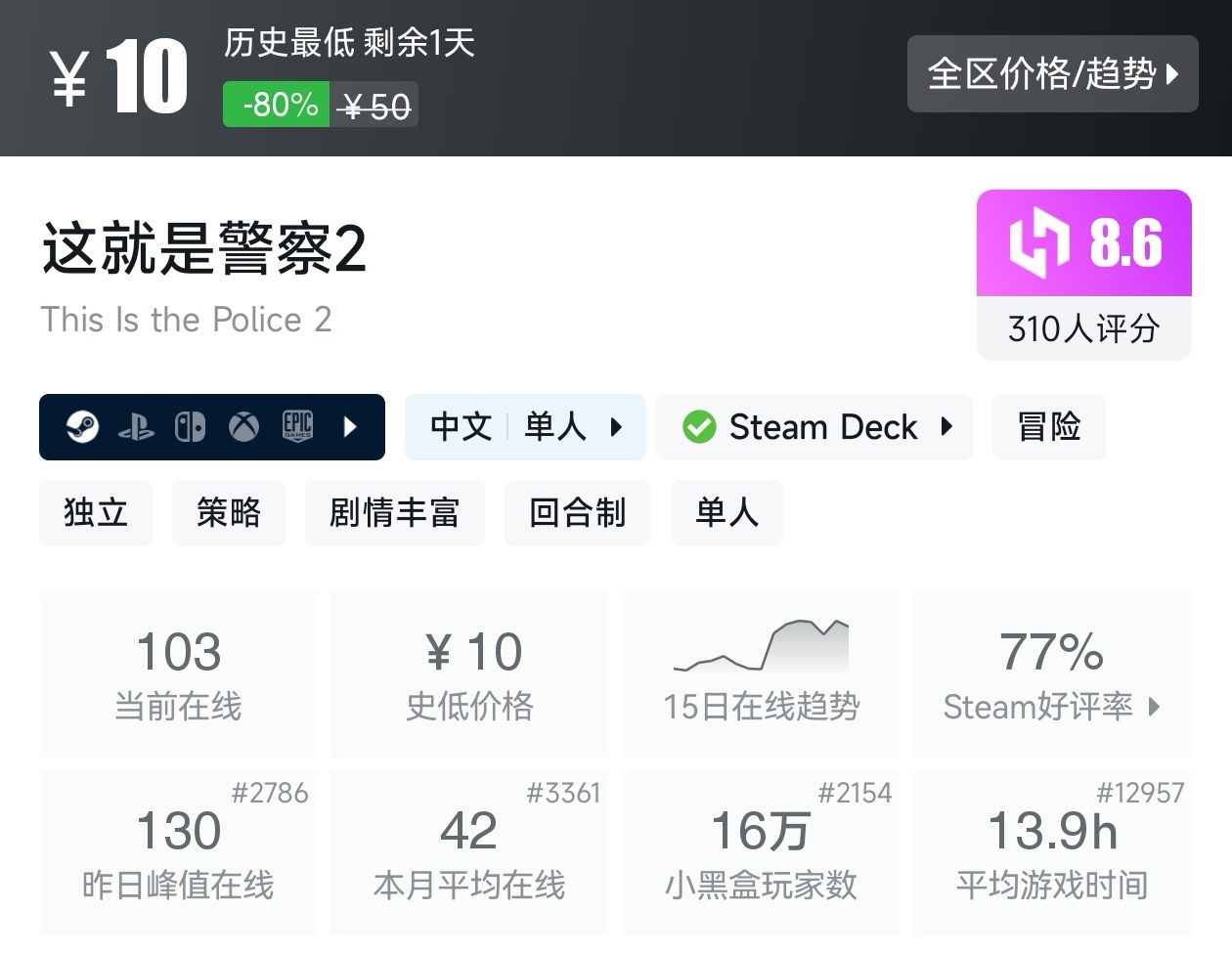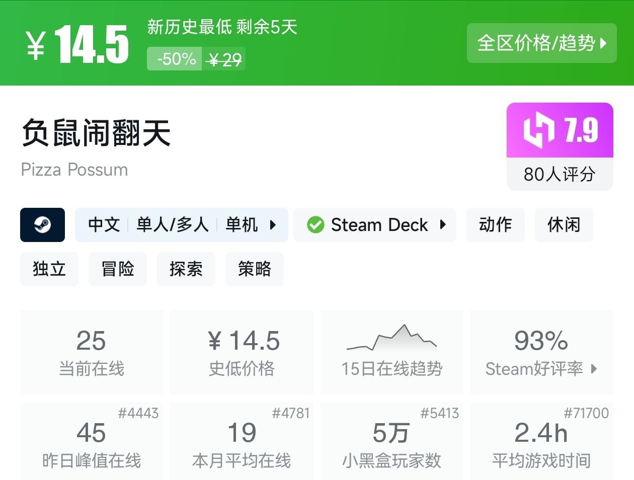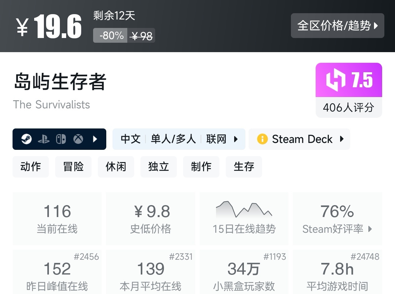 大家好,沒錯,又是我,你們的老朋友亦然,最近有很多遊戲都迎來了折扣,當然,包括很多史低遊戲,在我統計的時候就發現有很多20元以下的遊戲,不僅擁有很高的評價,而且還是史低,接下來我將爲各位進行一個彙總,希望我的彙總,能夠幫助各位盒友挑選心儀的遊戲。