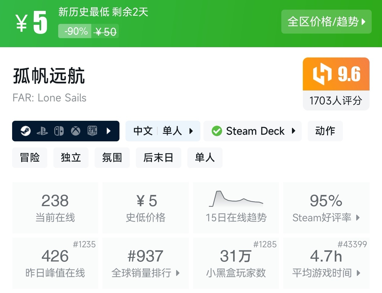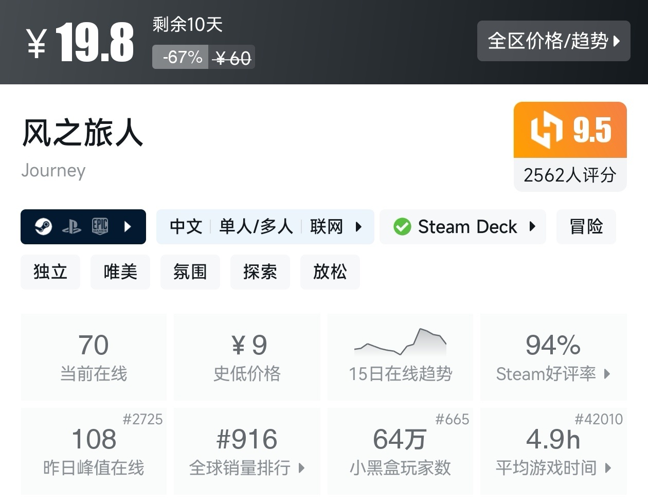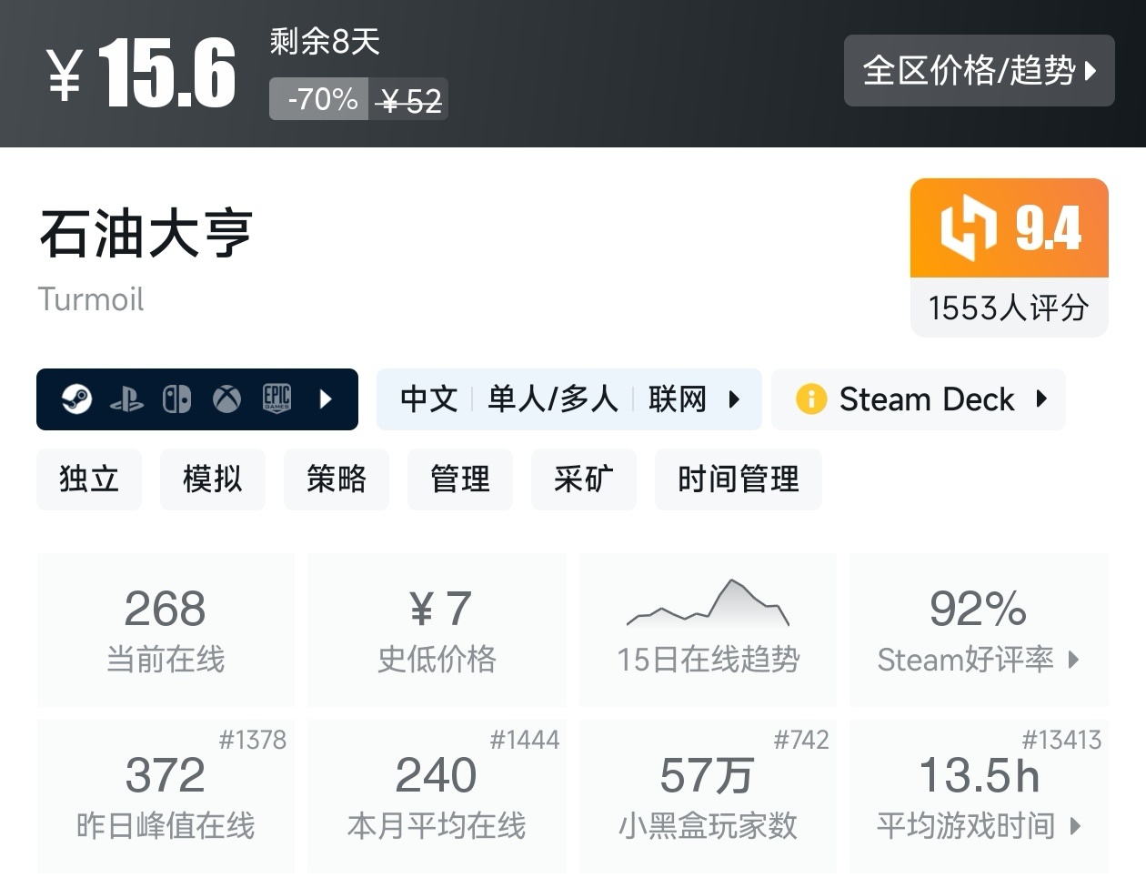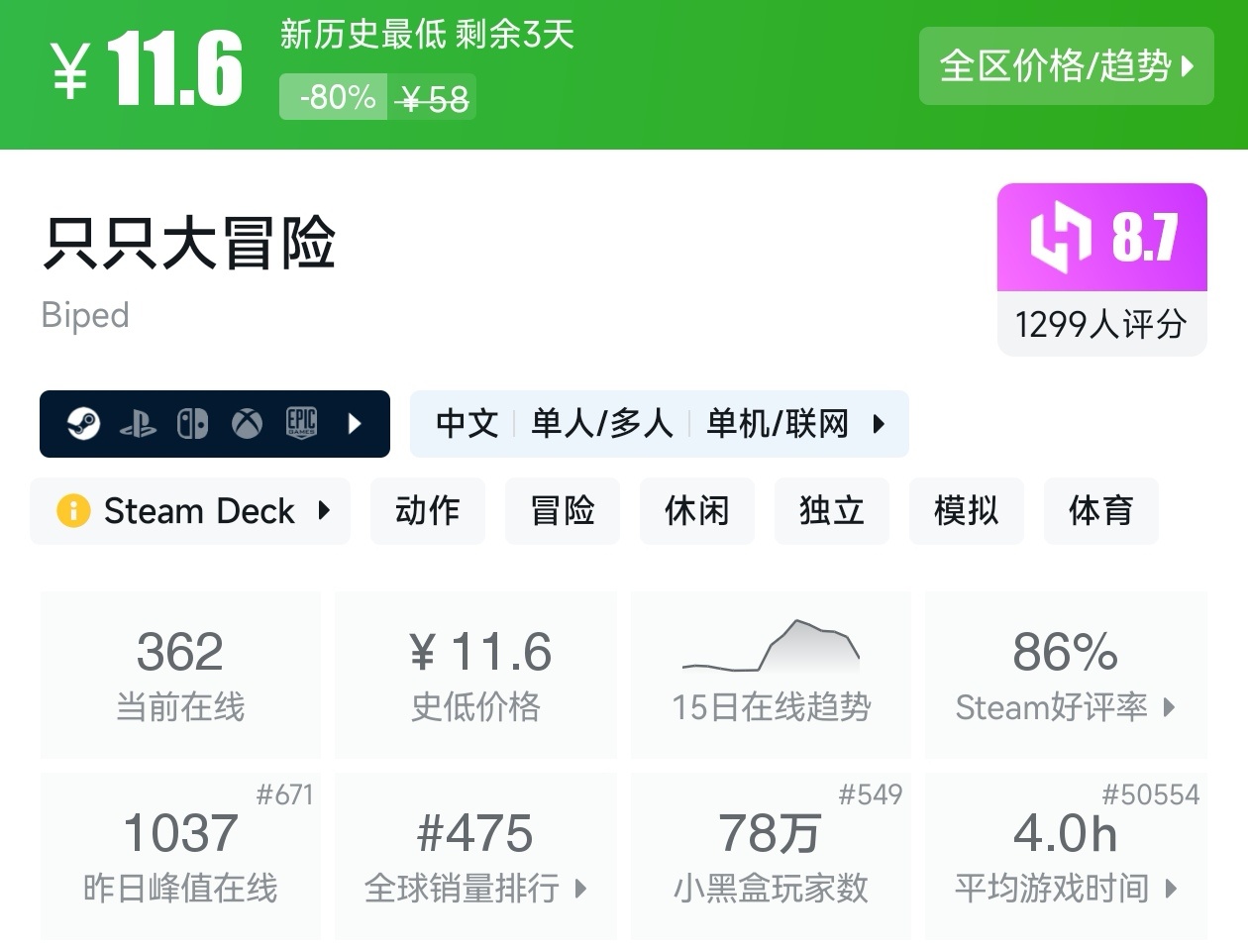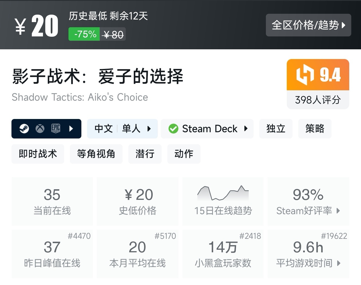 大家好,沒錯,又是我,你們的老朋友亦然,最近有很多遊戲都迎來了折扣,當然,包括很多史低遊戲,在我統計的時候就發現有很多20元以下的遊戲,不僅擁有很高的評價,而且還是史低,接下來我將爲各位進行一個彙總,希望我的彙總,能夠幫助各位盒友挑選心儀的遊戲。