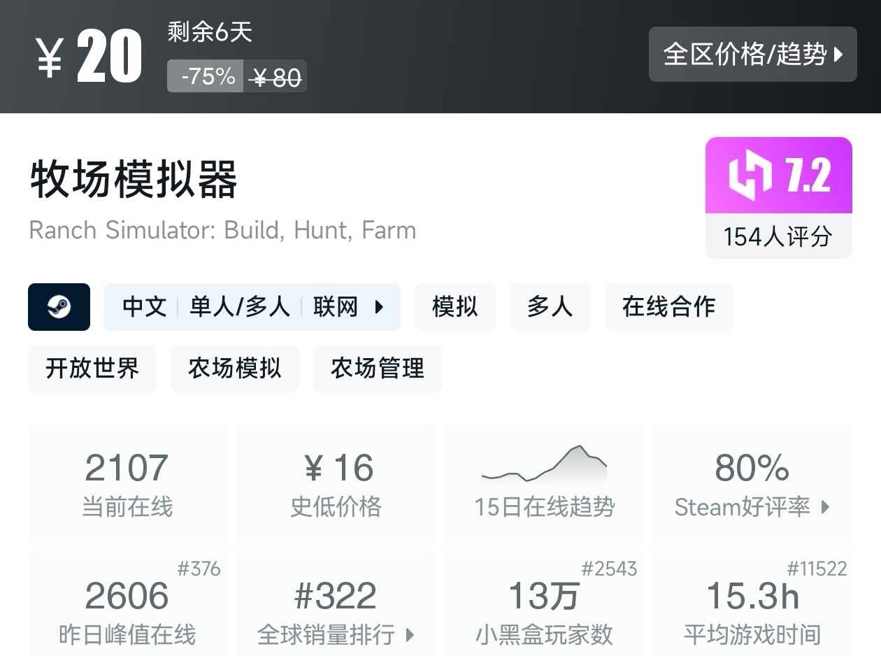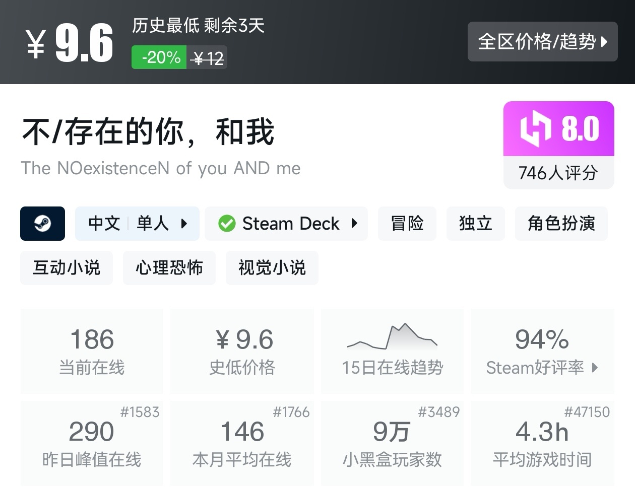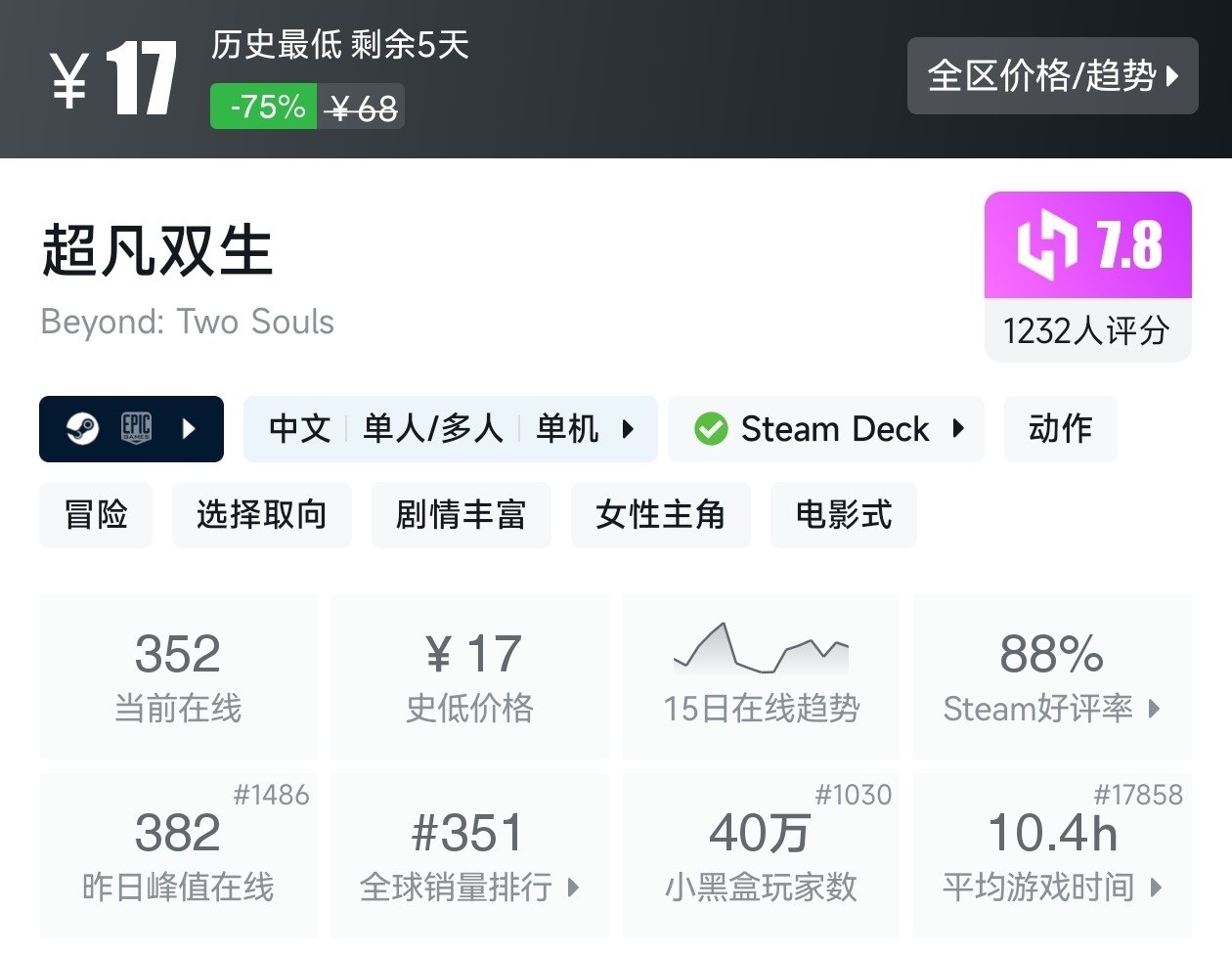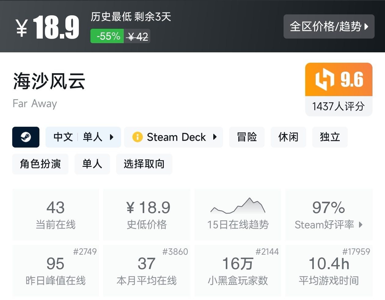 大家好,沒錯,又是我,你們的老朋友亦然,最近有很多遊戲都迎來了折扣,當然,包括很多史低遊戲,在我統計的時候就發現有很多20元以下的遊戲,不僅擁有很高的評價,而且還是史低,接下來我將爲各位進行一個彙總,希望我的彙總,能夠幫助各位盒友挑選心儀的遊戲。