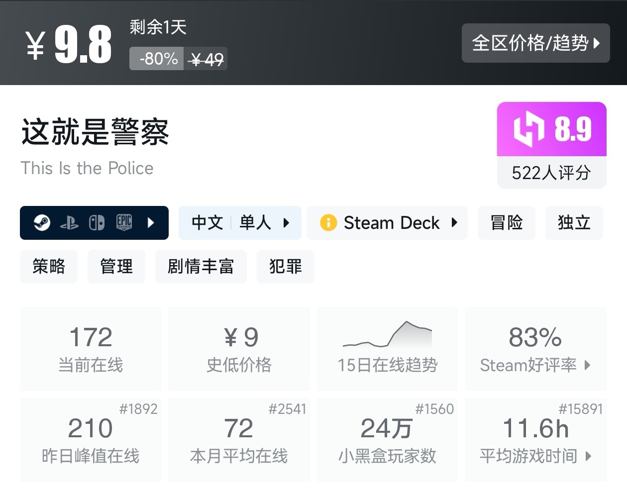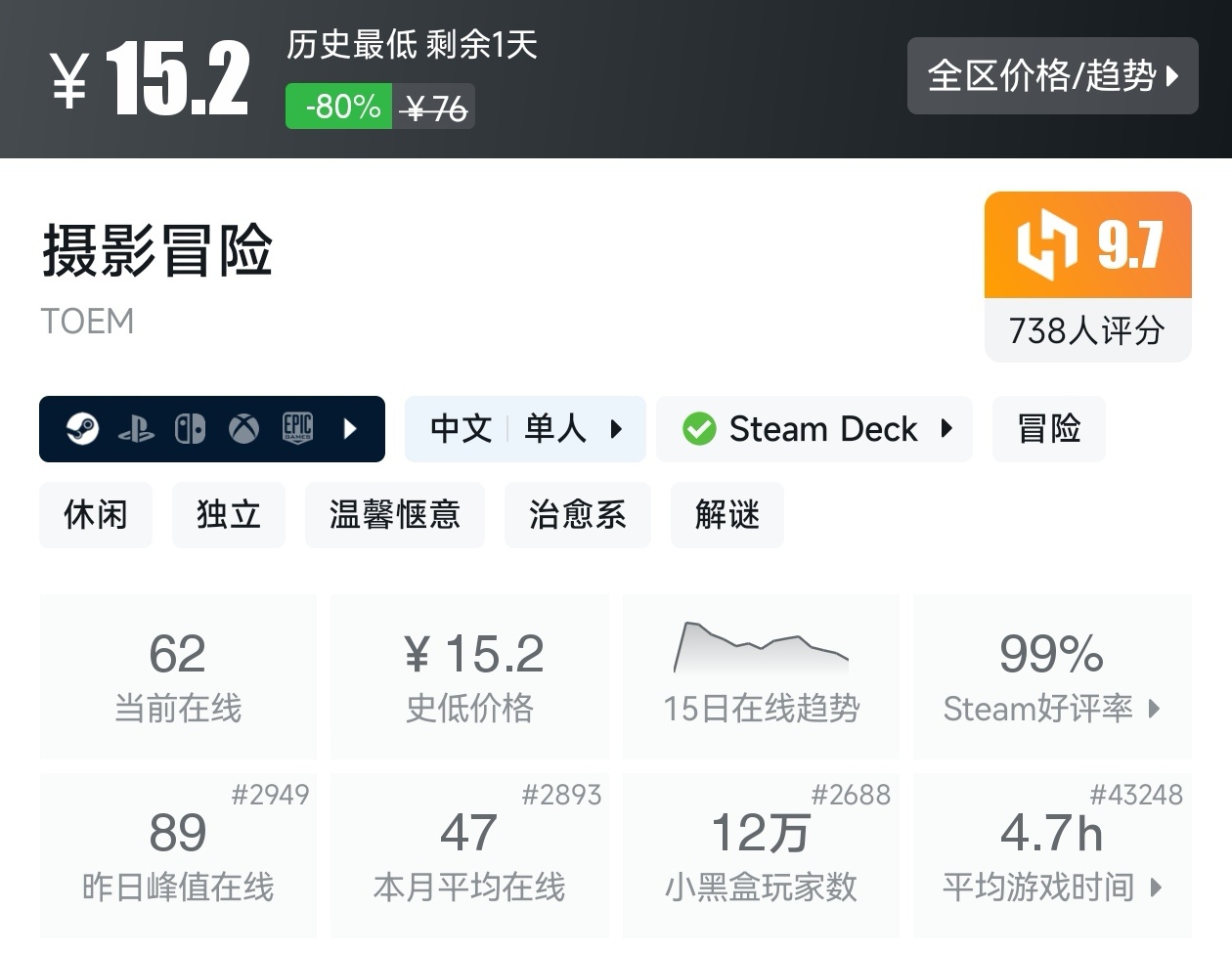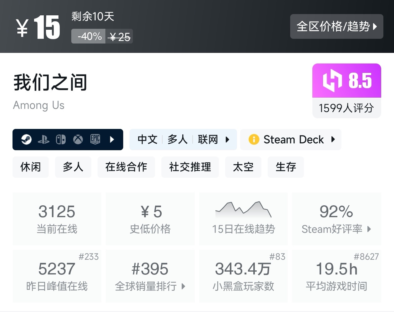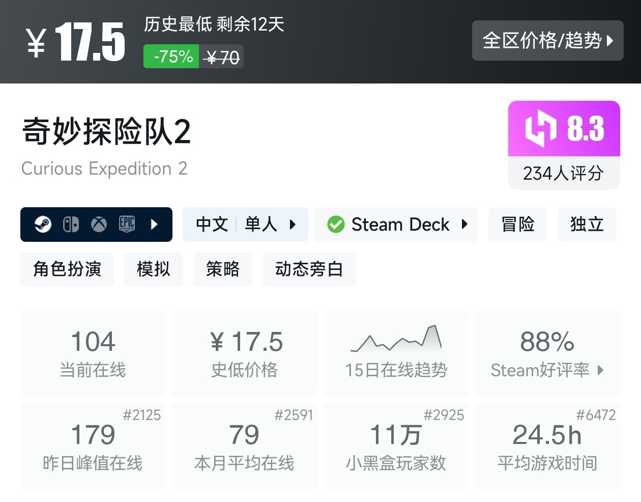 大家好,沒錯,又是我,你們的老朋友亦然,最近有很多遊戲都迎來了折扣,當然,包括很多史低遊戲,在我統計的時候就發現有很多20元以下的遊戲,不僅擁有很高的評價,而且還是史低,接下來我將爲各位進行一個彙總,希望我的彙總,能夠幫助各位盒友挑選心儀的遊戲。