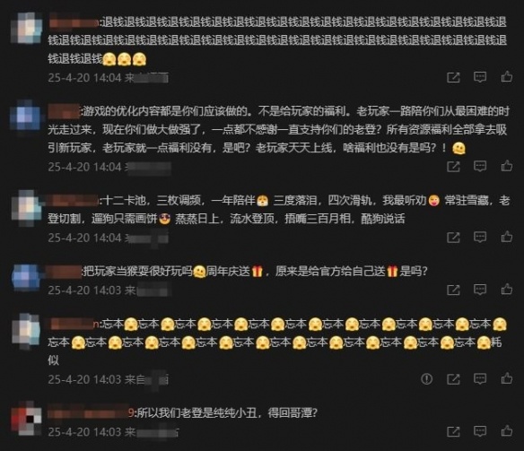 老玩家們更是自嘲變成了“牢”玩家。回顧《鳴潮》1.0開服時,就存在一堆雷點,比如看板娘秧秧的文案出現嚴重失誤,貶低了前線將士的貢獻,引發了玩家的強烈不滿。是老玩家們的不離不棄,用耐心和包容陪伴着《鳴潮》一步步成長,才讓它有了慢慢變好的機會。然而,在迎來一週年之際,遊戲不僅福利少得可憐,還對老玩家和新玩家進行區別對待,這種不公平的做法讓老玩家們感到心寒。