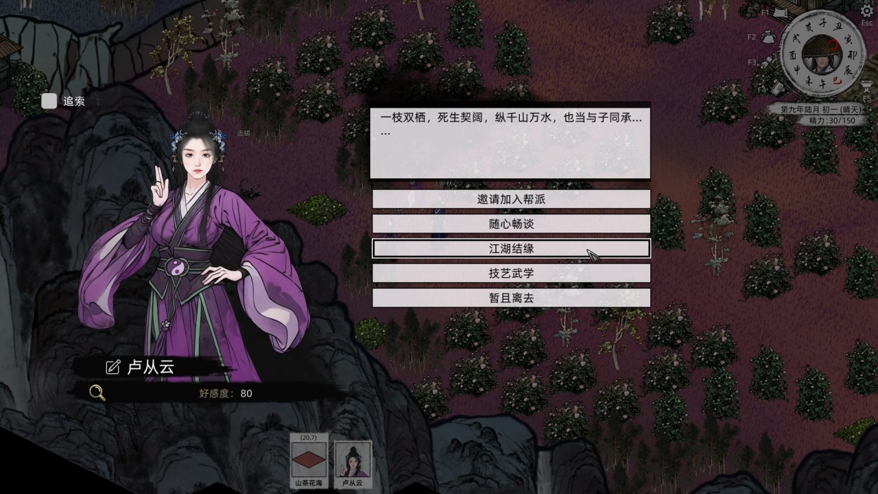 原創武俠劇情文本塑造有血有肉的江湖兒女形象,敘述快意恩仇的武林故事。正式版補齊完整主線劇情,提供五大結局分支供玩家體驗。你將以青萍村爲起點展開江湖闖蕩之旅,遊歷洛陽、長安、東瀛等地圖與各路NPC交互,瞭解他們的故事,從細枝末節處窺見武林的真容併成就一番威名。