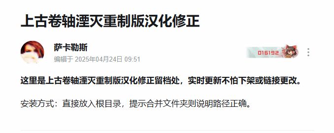 國內玩家“薩卡勒斯”因不滿官方漢化質量,如標點符號缺失、名詞不統一、法術效果描述不全等問題,於4月23日發佈了自制的漢化修正補丁,初期以“嚐鮮版”形式優先修復最嚴重的翻譯問題。