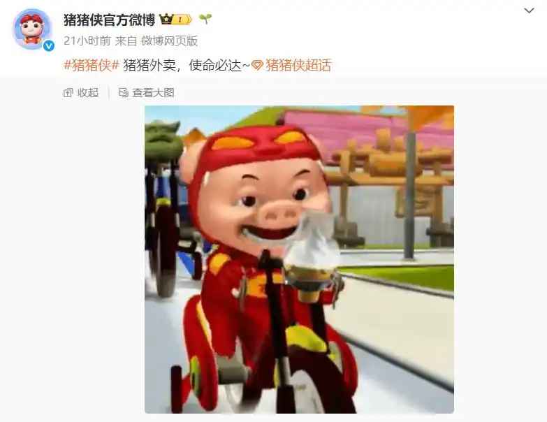 4月23日,豬豬俠官方微博發文:豬豬外賣,使命必達。疑似與最近的網絡熱梗呼應。