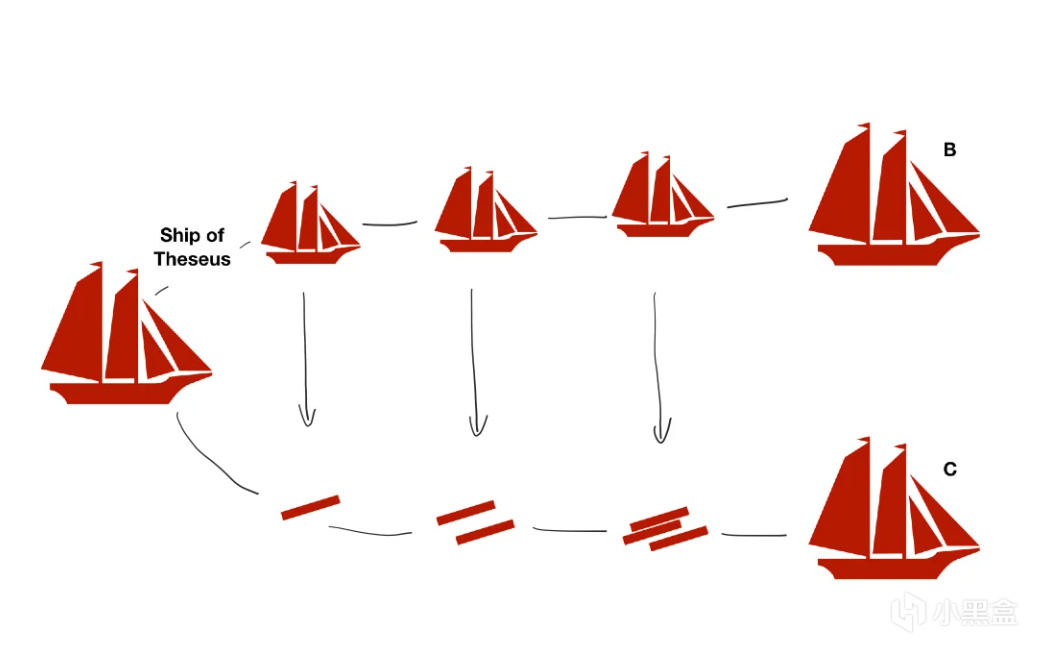 (當一艘船的零件進行修理替換,這艘船還是之前的船嗎;如果替換了所有零件,將舊零件重組成一艘船,這兩艘船又是什麼角色。)
