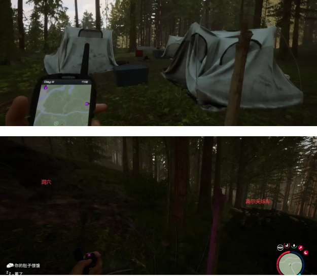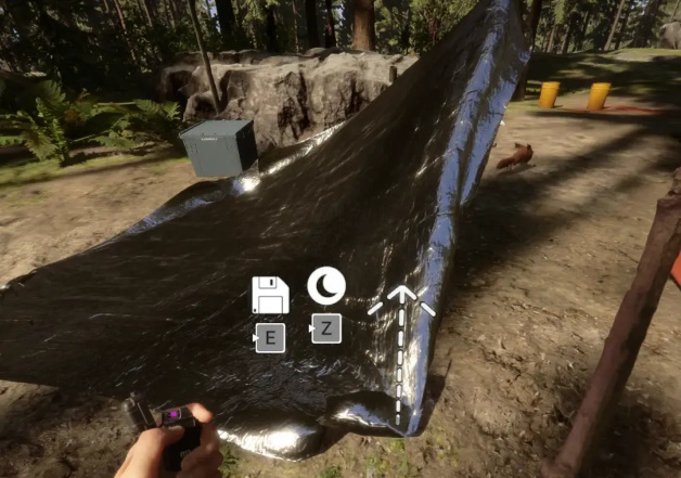 塑料帳篷是打開揹包,右上角有一個銀色的袋子,左鍵拿出來,放在地上,然後打開揹包把木根拿出來靠在地上的塑料四角上,隨意1-2次按下左鍵把木根放進去,就可以省着睡覺了。