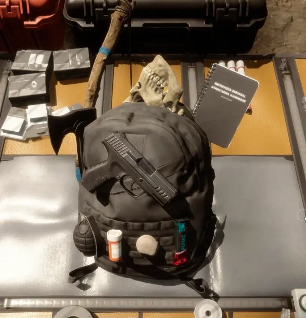 拿上斧子,移動地圖,打火機,筆記本。