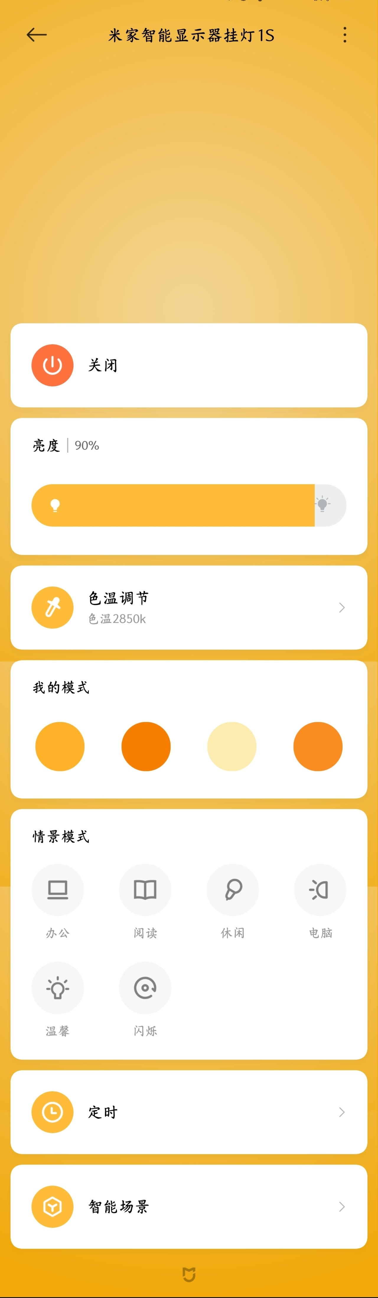 當然買小米東西不僅是爲了性價比,其生態也是重要的一環,該掛燈支持接入米家,智能化直接上了一個檔次,也方便很多,可以不用物理按鈕直接在米家APP上操控,或者呼叫小愛同學。裏面可以調節色溫,並且有多種照明模式可以選擇,我很喜歡用用電腦模式,暖色調看的很舒服,畢竟是電腦屏幕掛燈嘛,屬於是專業對口了。