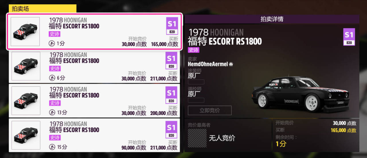 駕駛任意福特完成一場地平線公開自定義比賽,完成獎勵爲1978款HOONIGAN 福特ESCORT RS1800