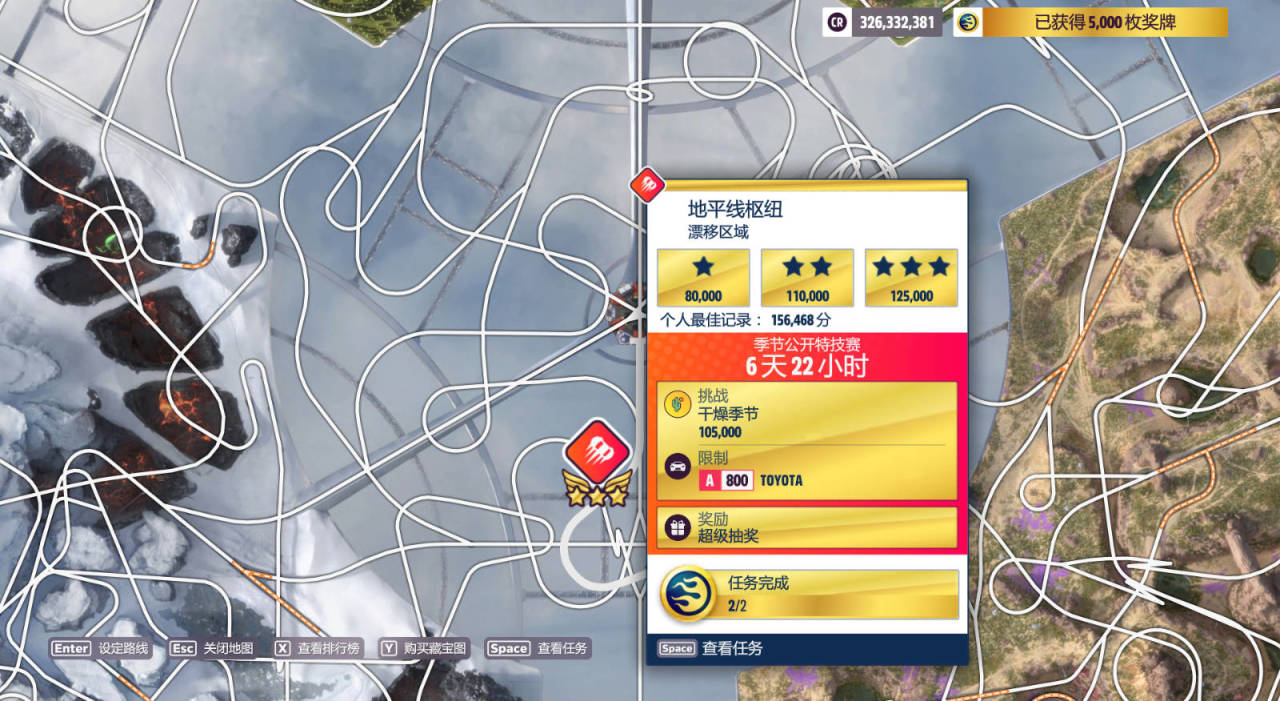 1、風火輪漂移區域:地平線樞紐(限制A(800)-TOYOTA)
