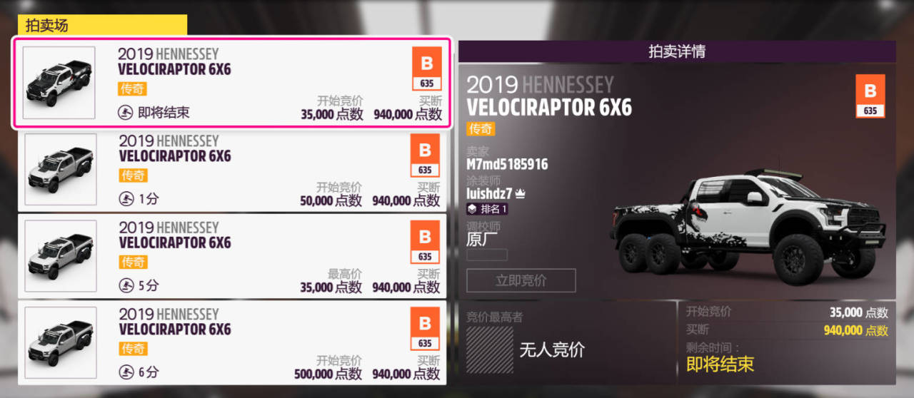 獎勵車輛爲:2019款軒尼詩 VELOCIRAPTOR 6X6