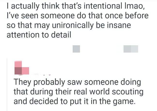 開發者大概是在現實考察時看到這種行爲,然後決定把它做到遊戲裏了。