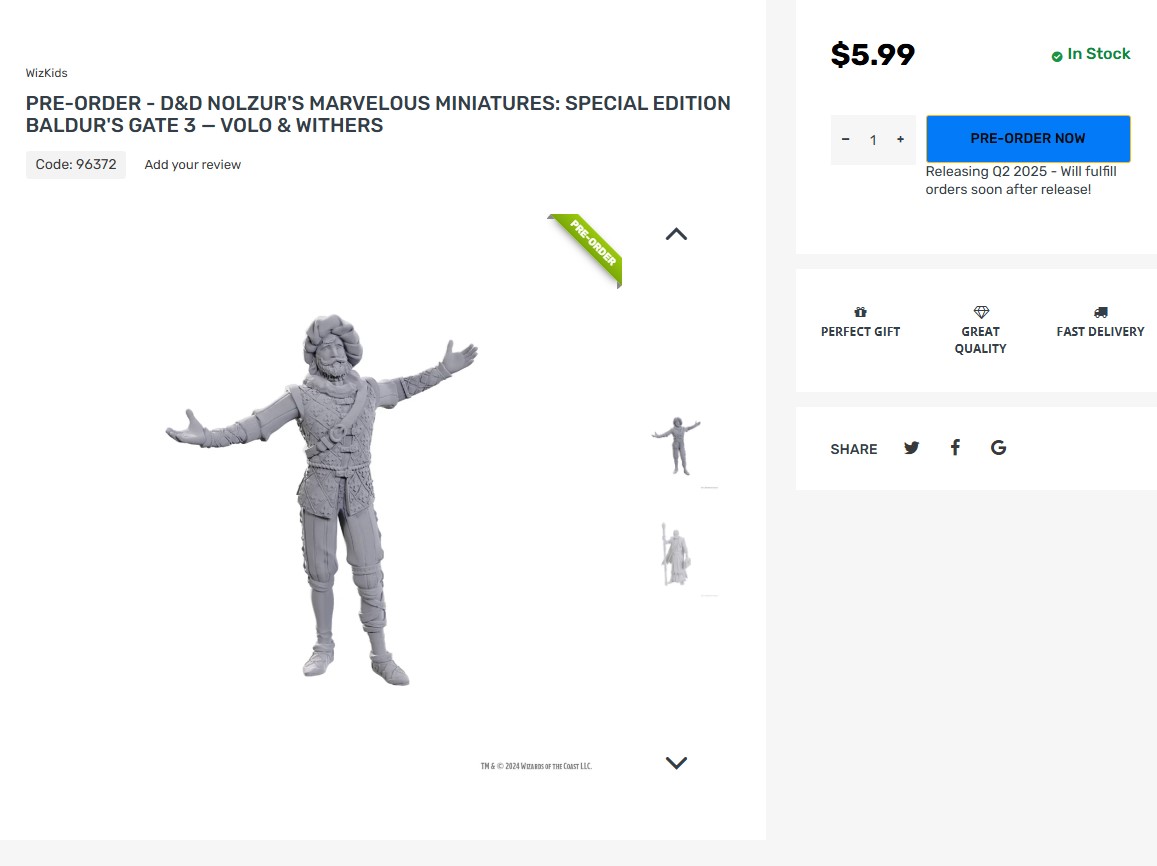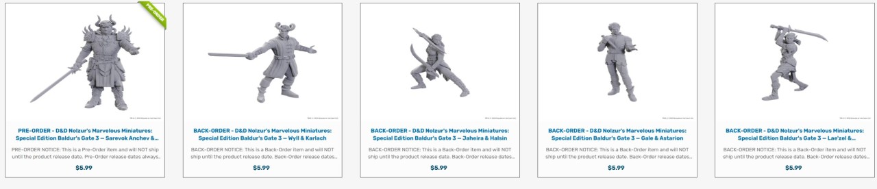 目前wizkids官網上的《龍與地下城:領域圖標:博德之門3》人物套裝已下架,只有部分單獨的角色微縮模型顯示預購中。