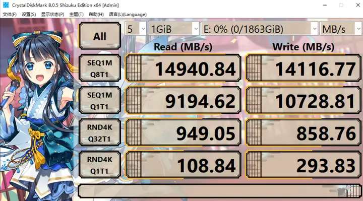 順序讀是14940MB/s,順序寫是14116MB/s,對比7400MB/s的PCIE4.0,這個速度可謂是翻倍!和大家科普下這個“高速”主要體現在哪裏: