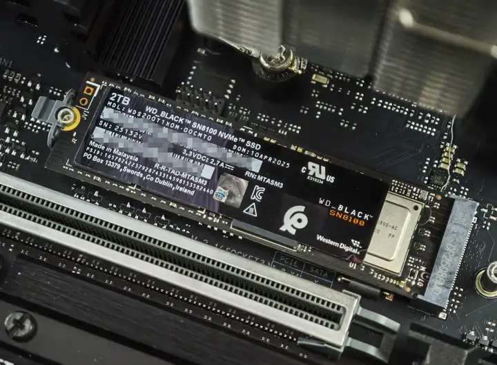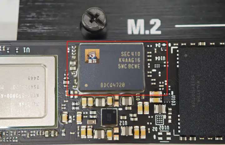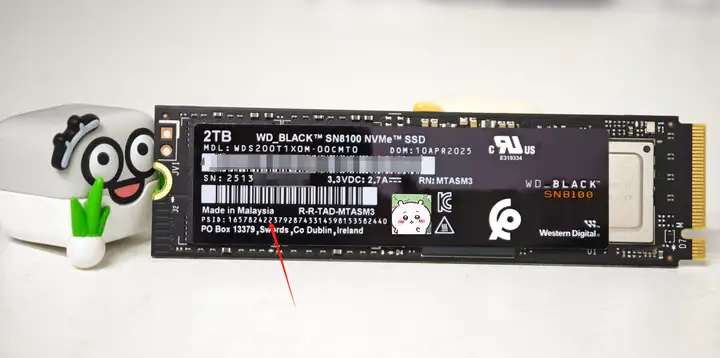 主控和顆粒之間,可以看到WD_BLACK SN8100還配備了一顆緩存: